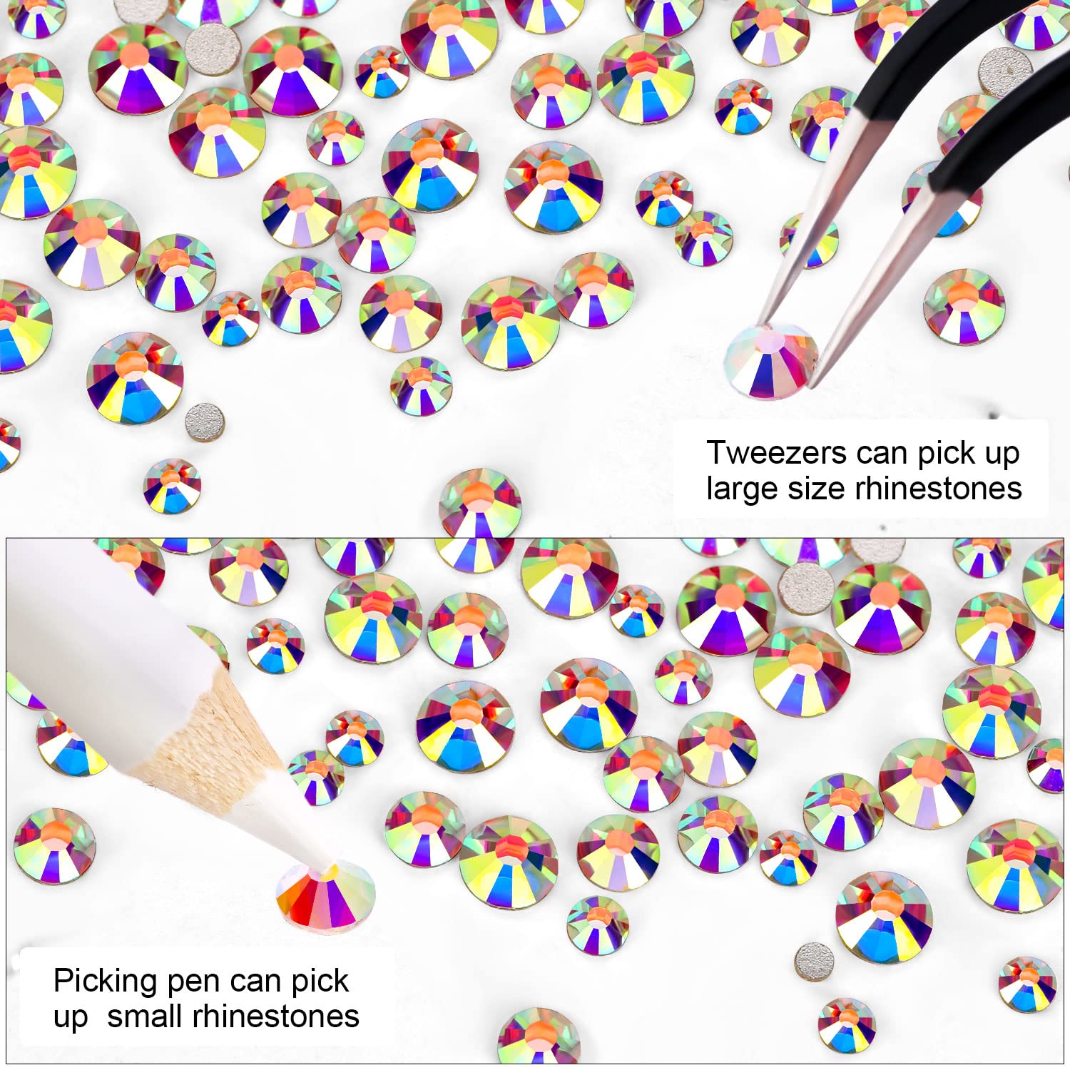 4240Pcs Flatback Crystal Ab Rhinestones Glass Gems for Nail Art Jewels Makeup Tumblers Shiny Round with Tweezers and Picking Pen (SS6~SS20 Set)