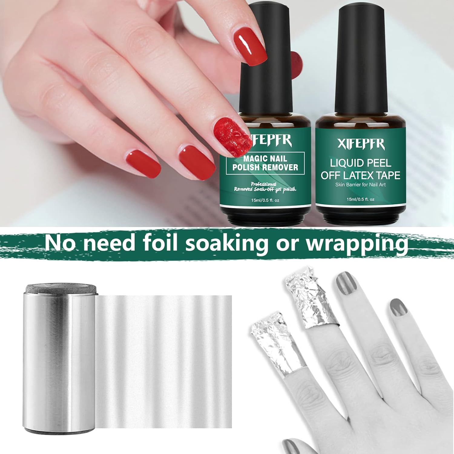 - Effective Nail Polish Remover: Our gel nail polish remover requires no foil soaking or wrapping, no tedious removal process. Just rub off the top coat with a nail file, lightly apply the gel polish remover to your nails, and after 2-5 minutes the surface of your nails will automatically burst. Note: Not for builder gel, poly gel, acrylic powder, dip powder.