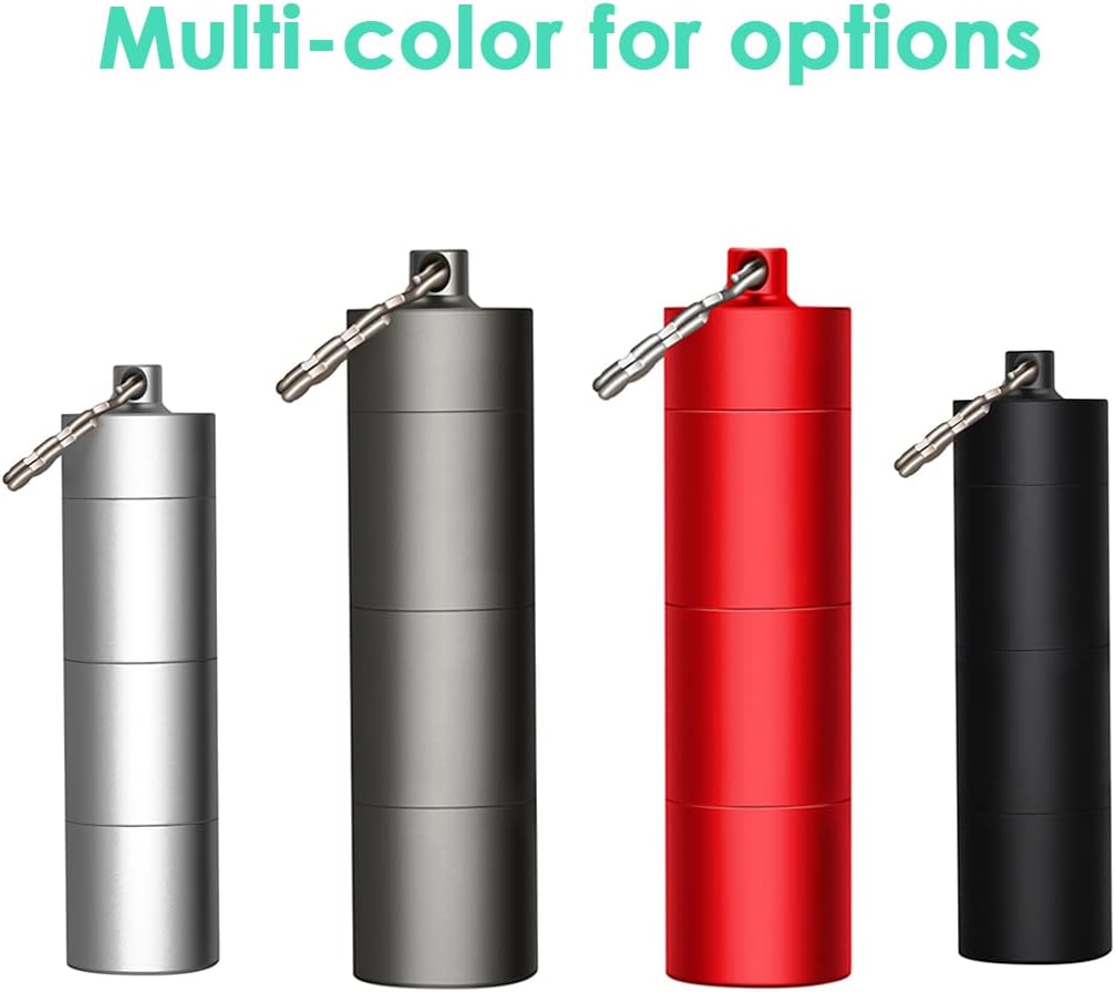- Military grade aluminum, unlike plastic pill cases, this metal pill holder is indestructible, Super Tough but Ultra-light Weight. With key ring, you can hang it on your keychain, bag or put it in your pocket, then you can easily access to your medicine at office, in the car or on travel.