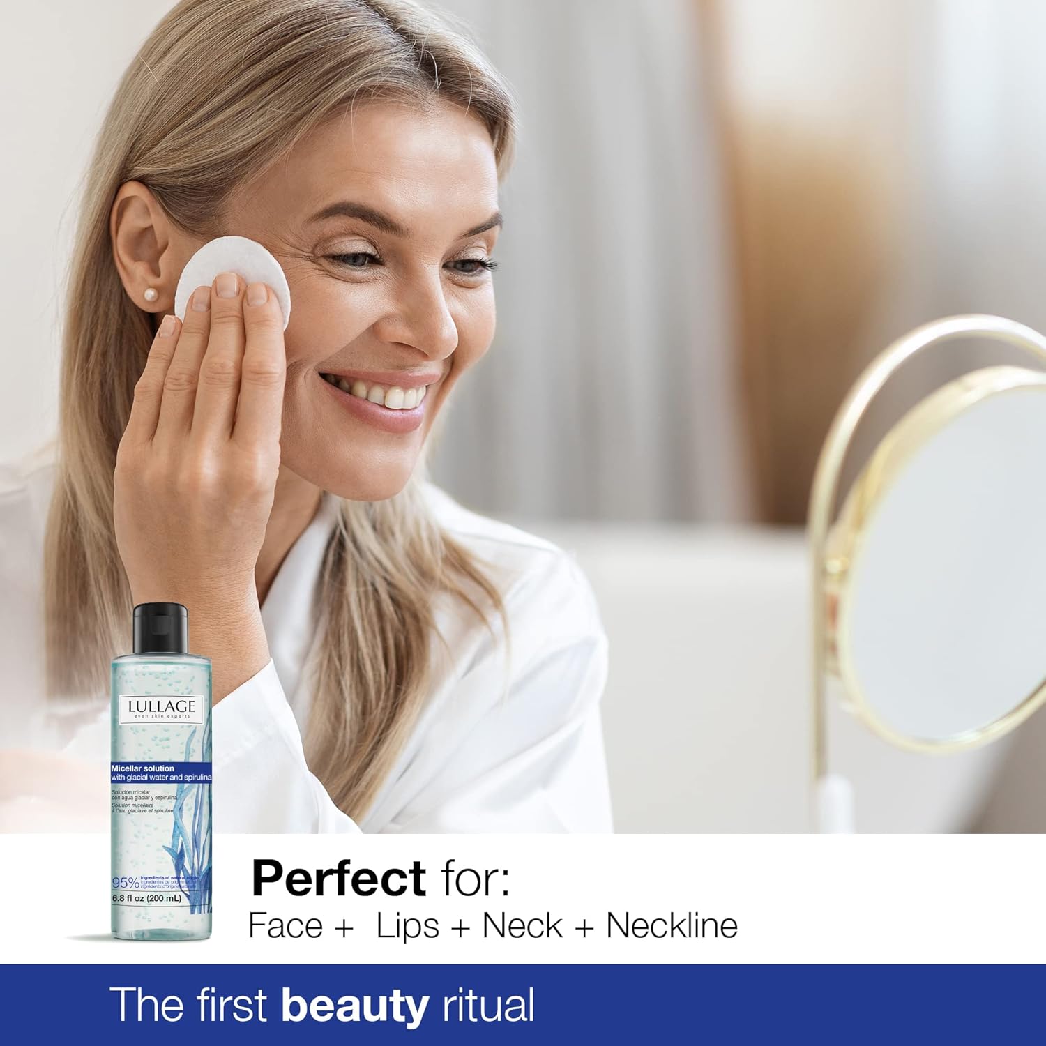 LULLAGE Micellar Water Makeup Remover – Cleanser with Niacinamide, Spirulina & Glacier Water Solution for All Skin Types | Removes Waterproof Makeup | 6.8 Fl Oz