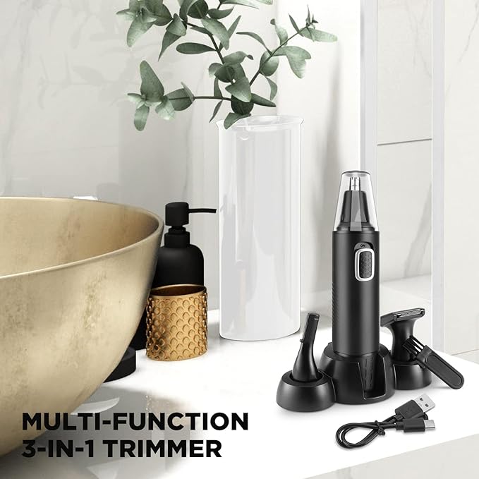 - 【3-IN-1 Grooming kit】The 3 in 1 mens grooming kit includes nose trimmer, eyebrow trimmer, beard trimmer for men. It's great to trim your unwanted hair from head to toe, suitable for nose, ears, eyebrow, sideburns, beard, face, arm, bikini, body, groin area trimming.