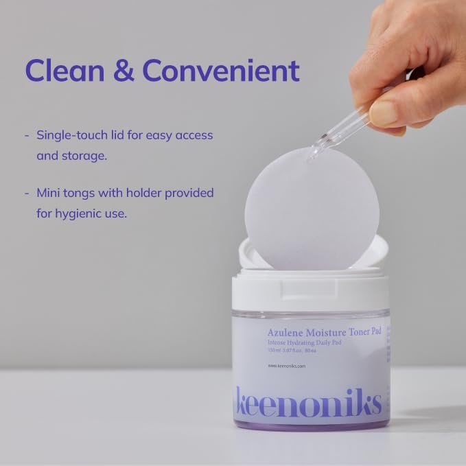 Azulene Moisture Toner Pad - Anti-flammatory & Hydrating Facial Pad with Chamomile Extract, Panthenol & AQUAXYL for Red, Sensitive SkinㅣKorean Skincareㅣ 80 Pads (5.07 Oz)
