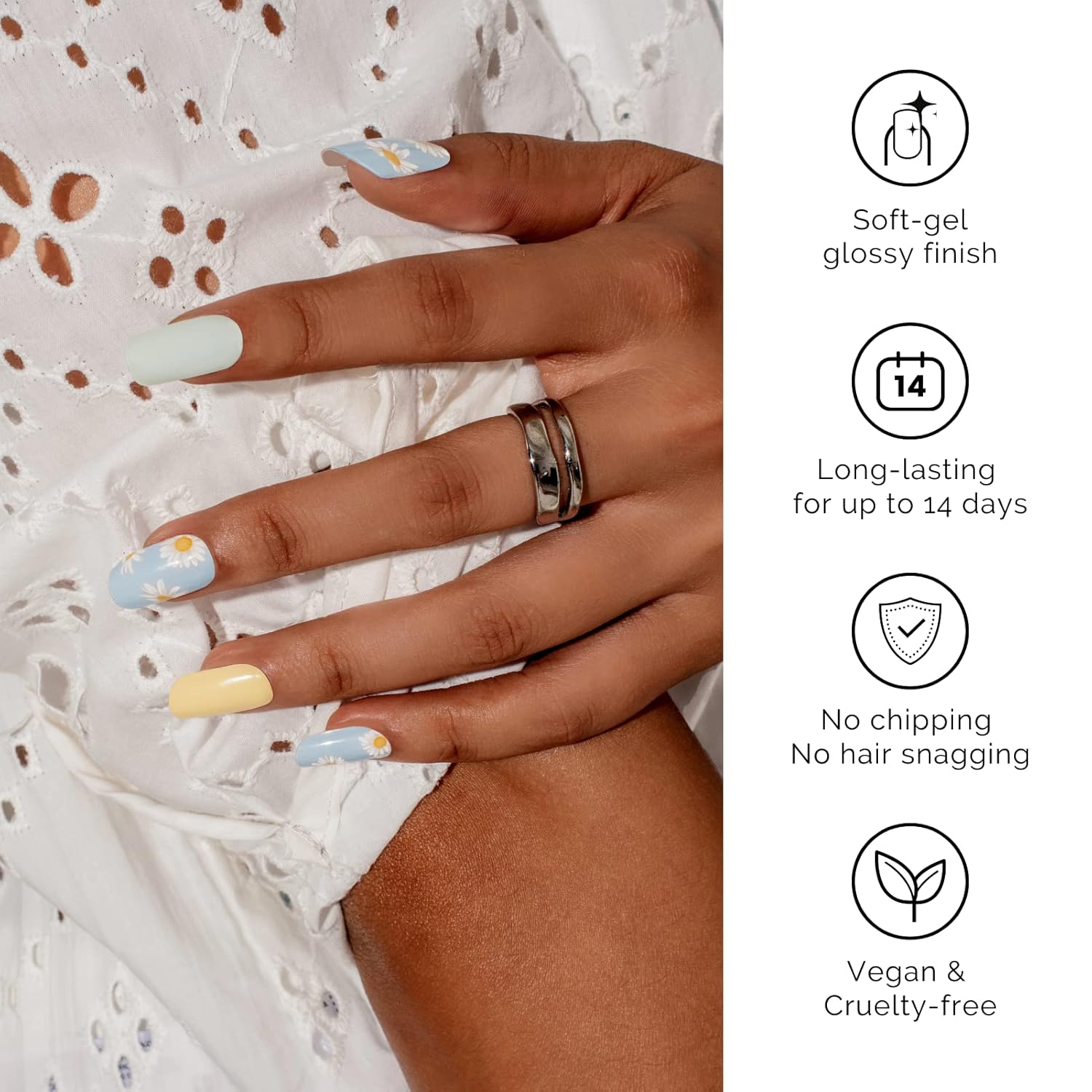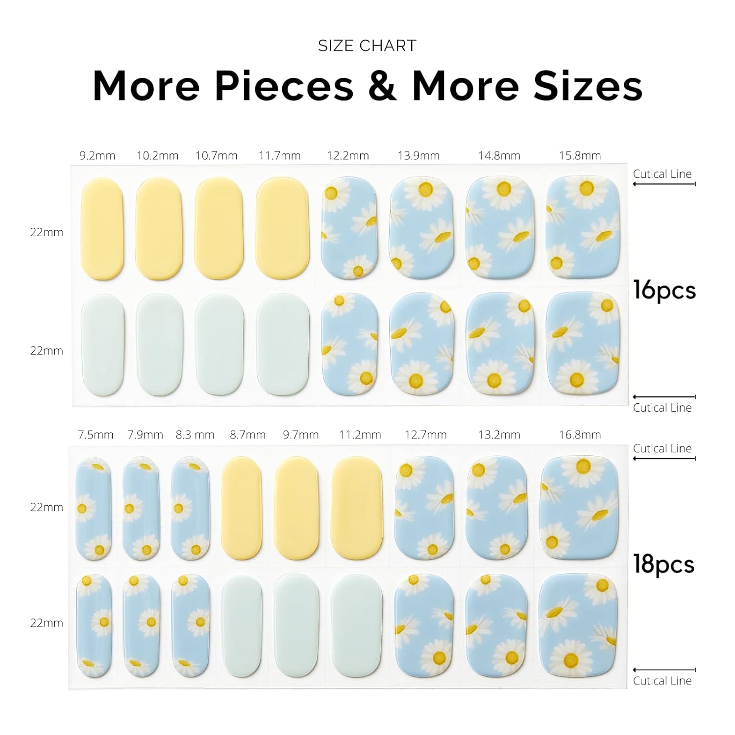 Nailog Semi Cured Gel Nail Strips 34 pcs | Long Lasting Nail Polish Sticker Wraps with Glossy Gel Finish | Daisy