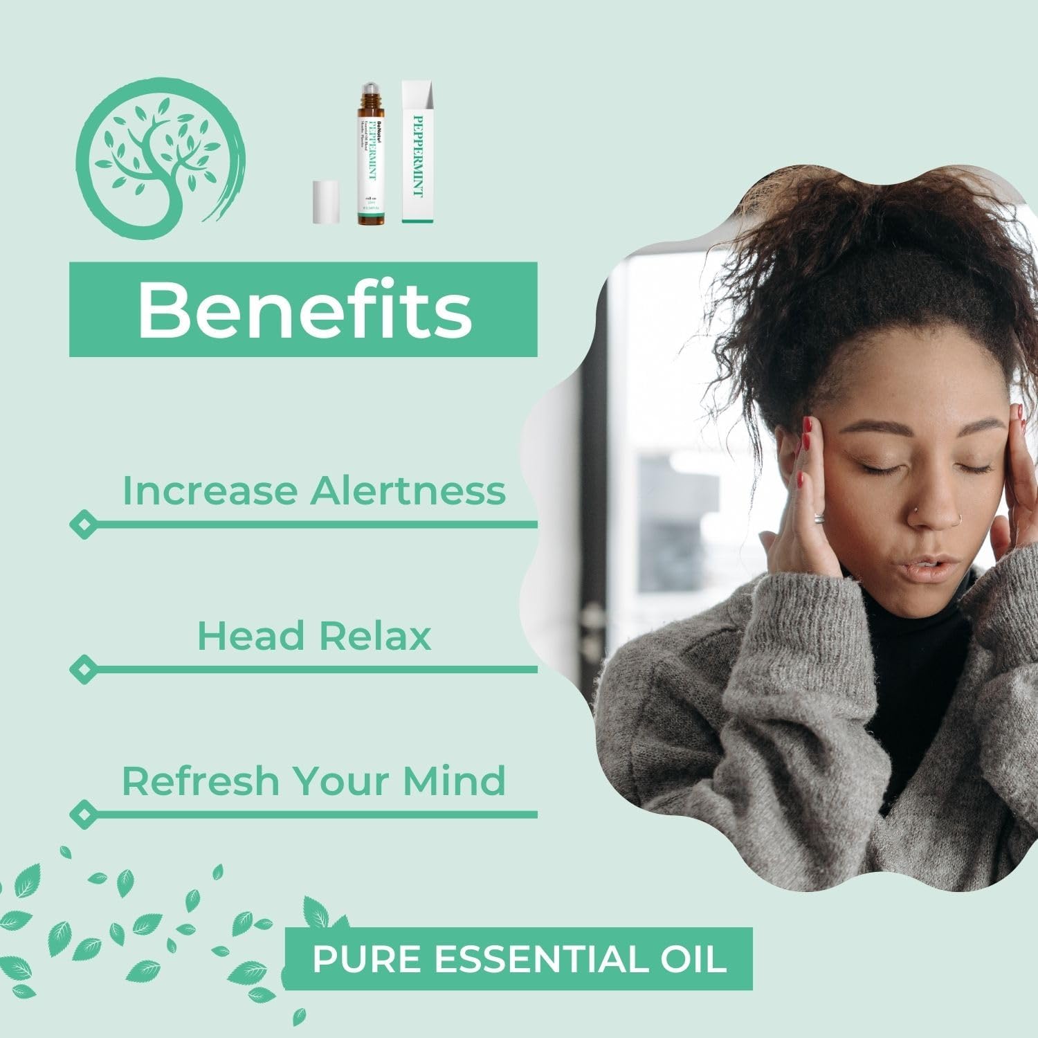Benatu Peppermint Oil Roll On, Pre-Diluted Natural Essential Oil Blend Roller Travel Size for Skin Care, Aromatherapy, Hair, Body Topical Massage - Head Refresh 10ml