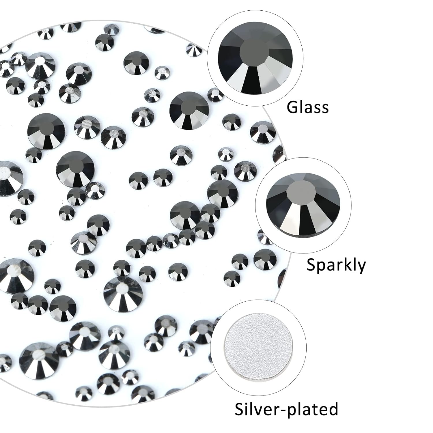 - 💎Material: Glass/Artificial Crystal. Surface High-precision cross-section, multi-sided cutting, high brightness,high Sparkly. Flatback, Round,Silver-plated back, not easy to be allergic. The color runs through the rhinestones without fading.