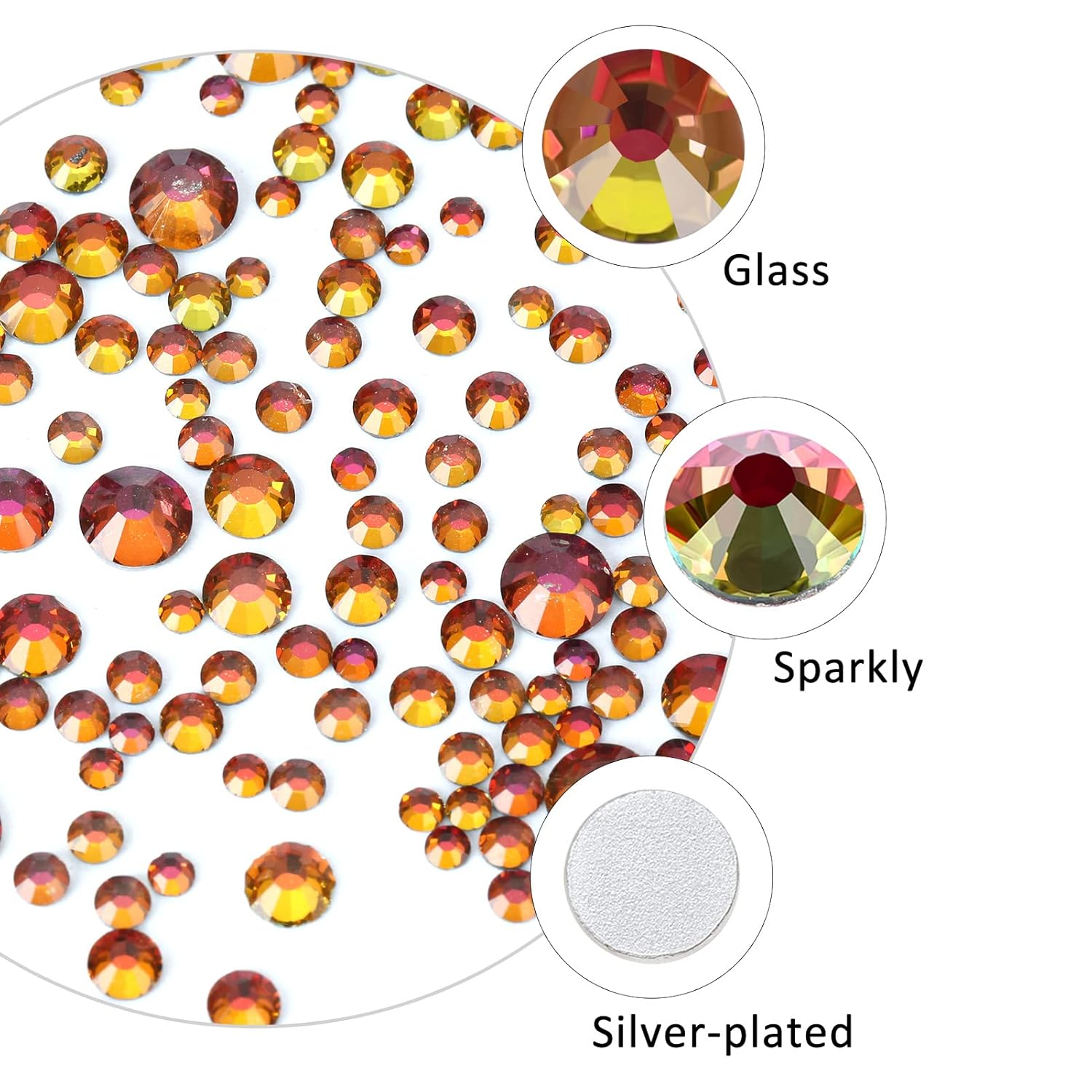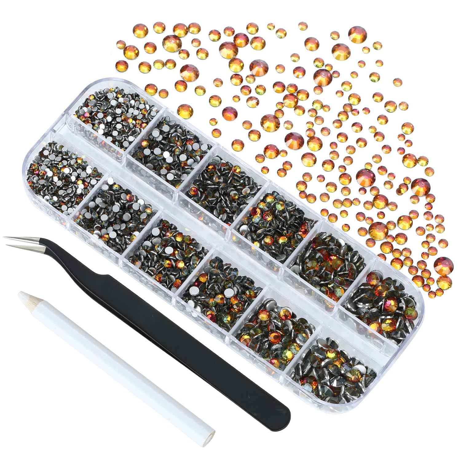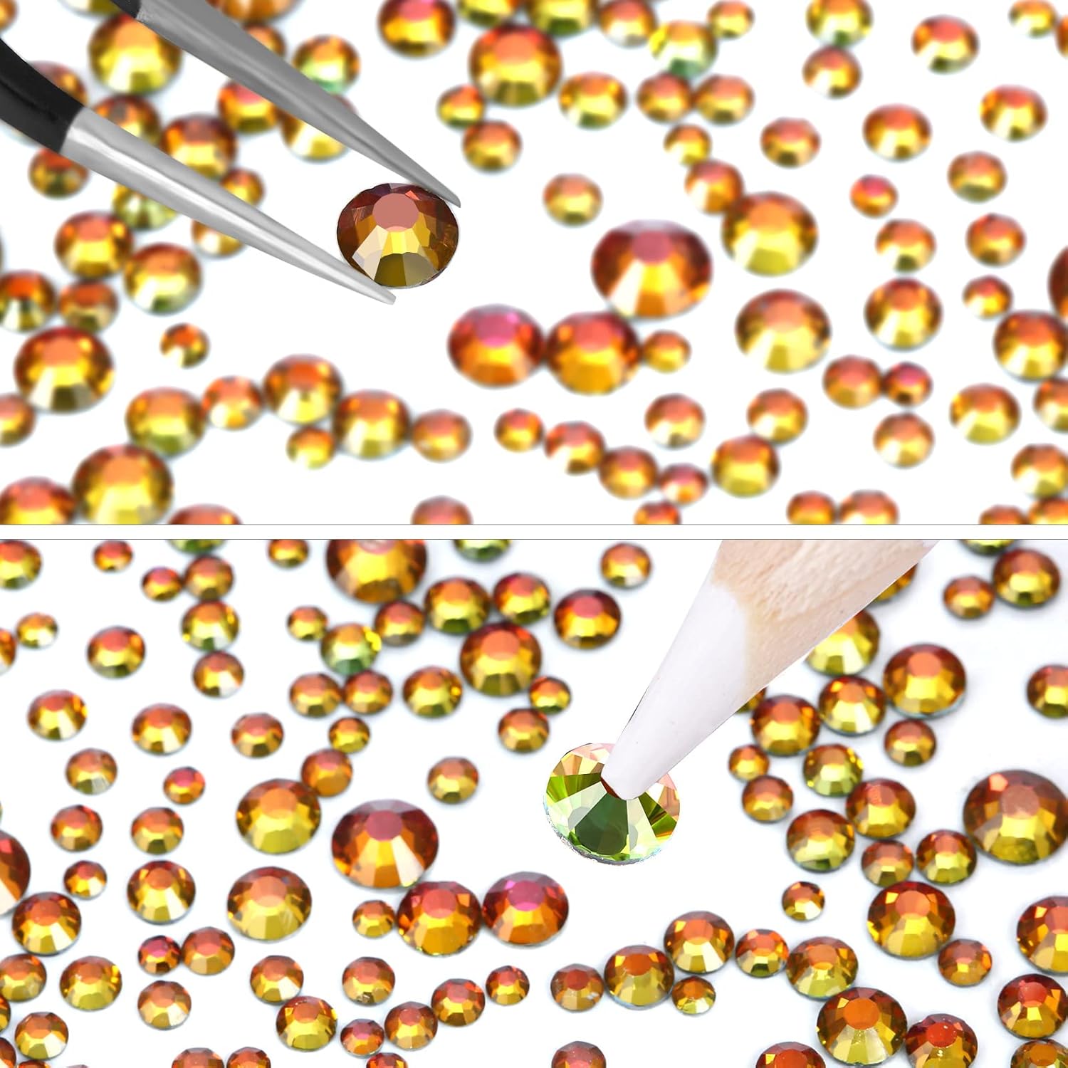 4240Pcs Red Flame Flatback Rhinestones 6 Sizes Crystal Diamonds for Nail Art Crafts Clothes Shoes with Tweezers and Picking Pen