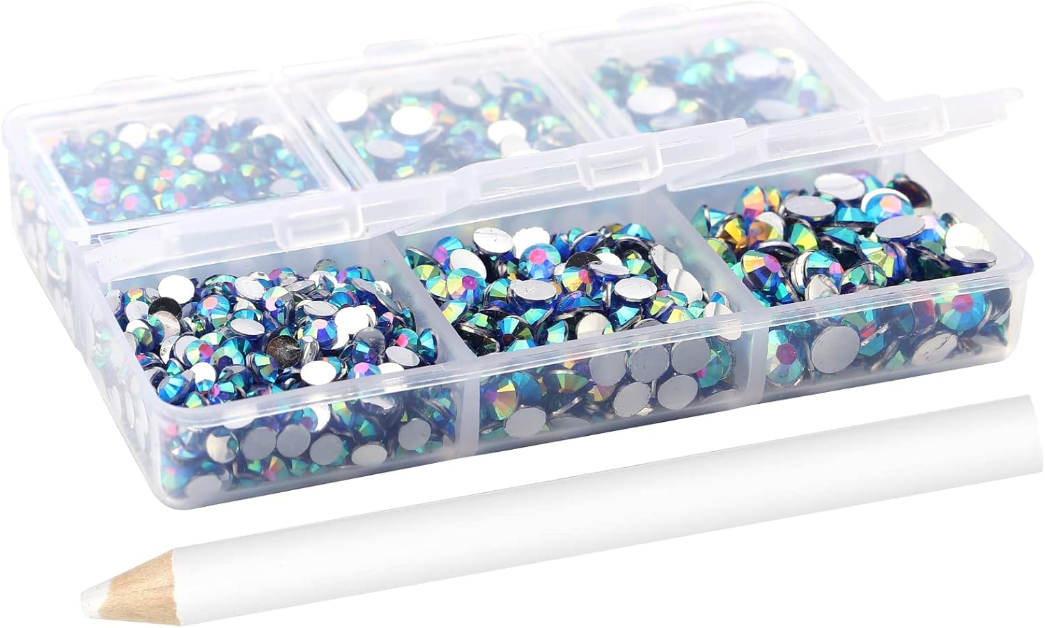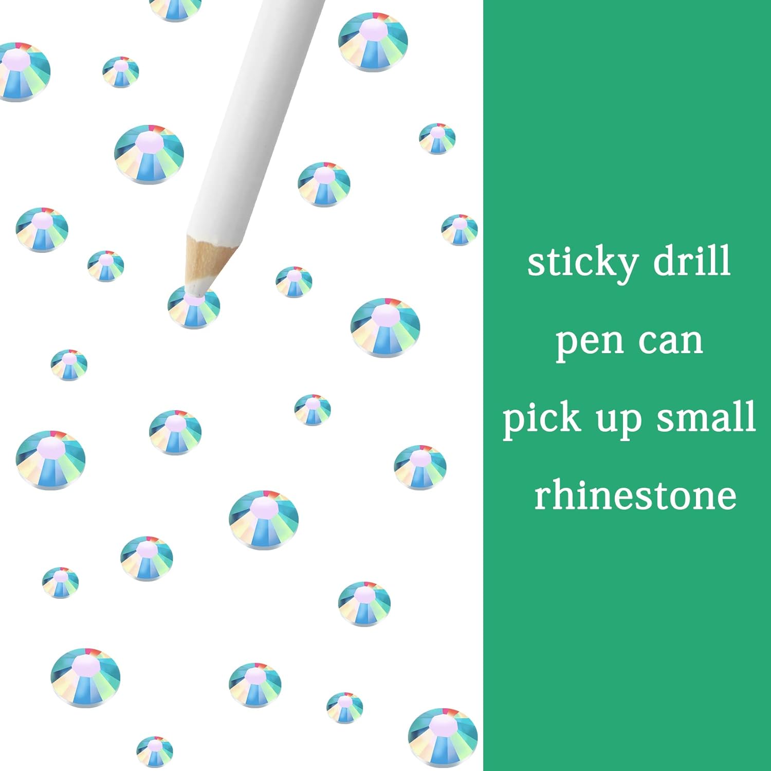 - 3 Sizes Rhinestones Set with Pick Up Pen: 2050 pcs per box. Round flat backs &Non Hotfix, SS10 (3mm) 1100PCS, SS16 (4mm) 600PCS / SS20(5mm) 350PCS.