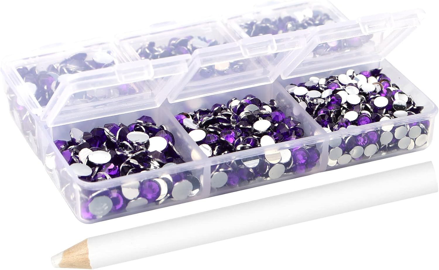 - 3 Sizes Rhinestones Set with Pick Up Pen: 2050 pcs per box. Round flat backs &Non Hotfix, SS10 (3mm) 1100PCS, SS16 (4mm) 600PCS / SS20(5mm) 350PCS.