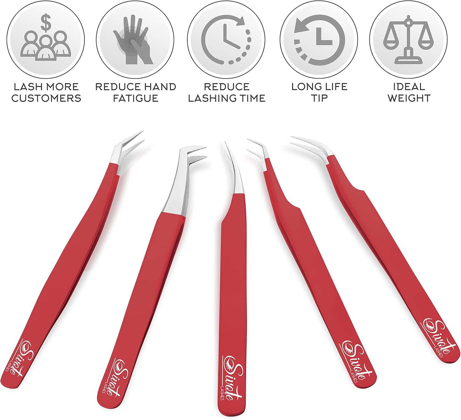 SIVOTE Eyelash Extension Tweezers for Classic & Volume Lashes, 5-Pack, Red