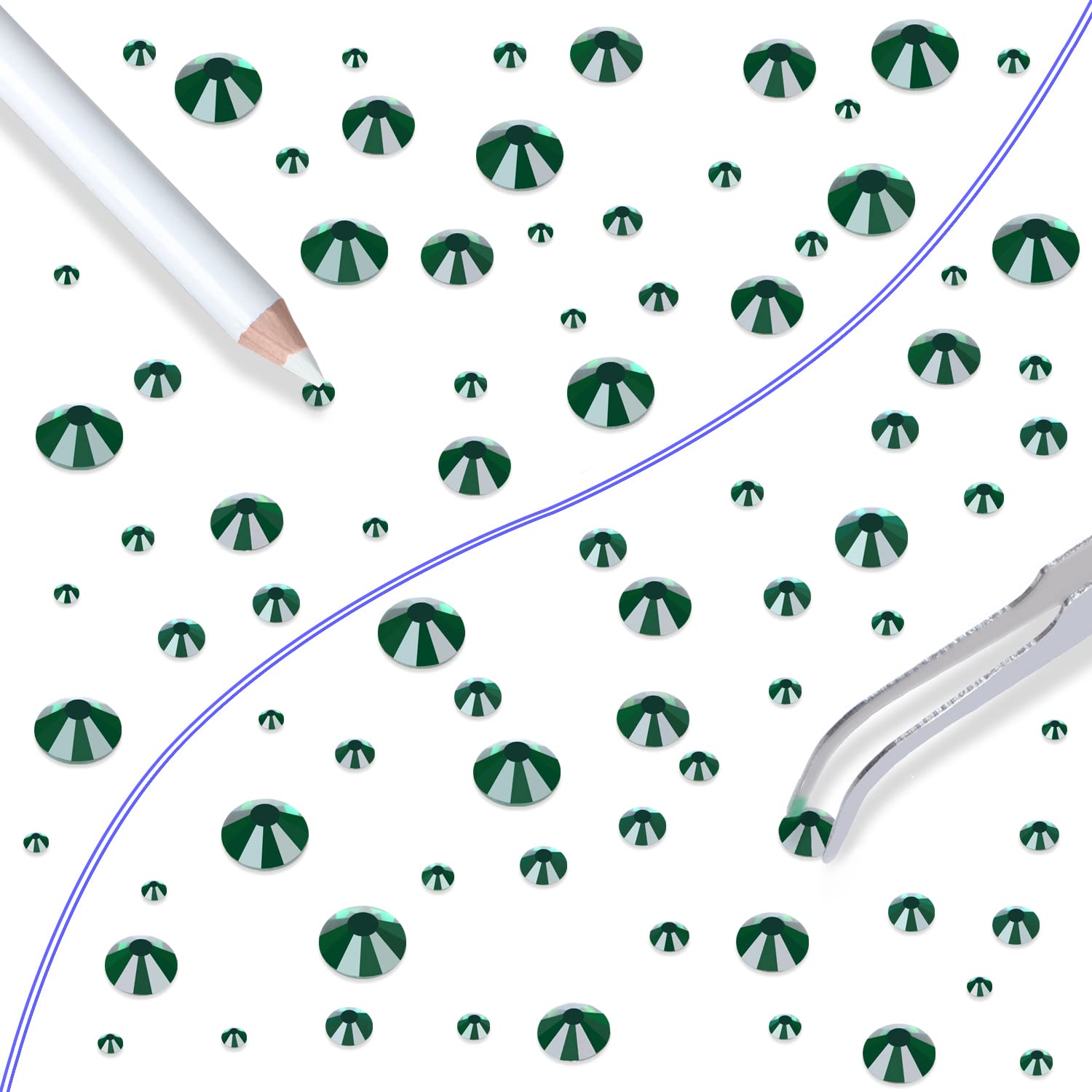 LPBeads 6000 Pieces Emerald Non Hotfix Rhinestones 6 Sizes Round Crystal Glass Flat Back Rhinestones with Tweezers and Picking Pen for Nail Art Crafts Clothes Bags DIY