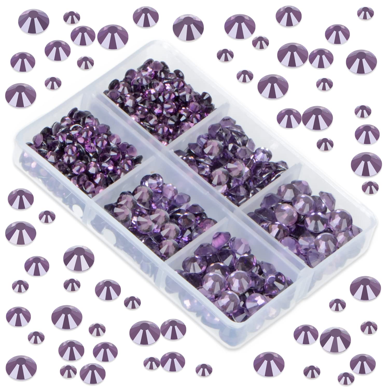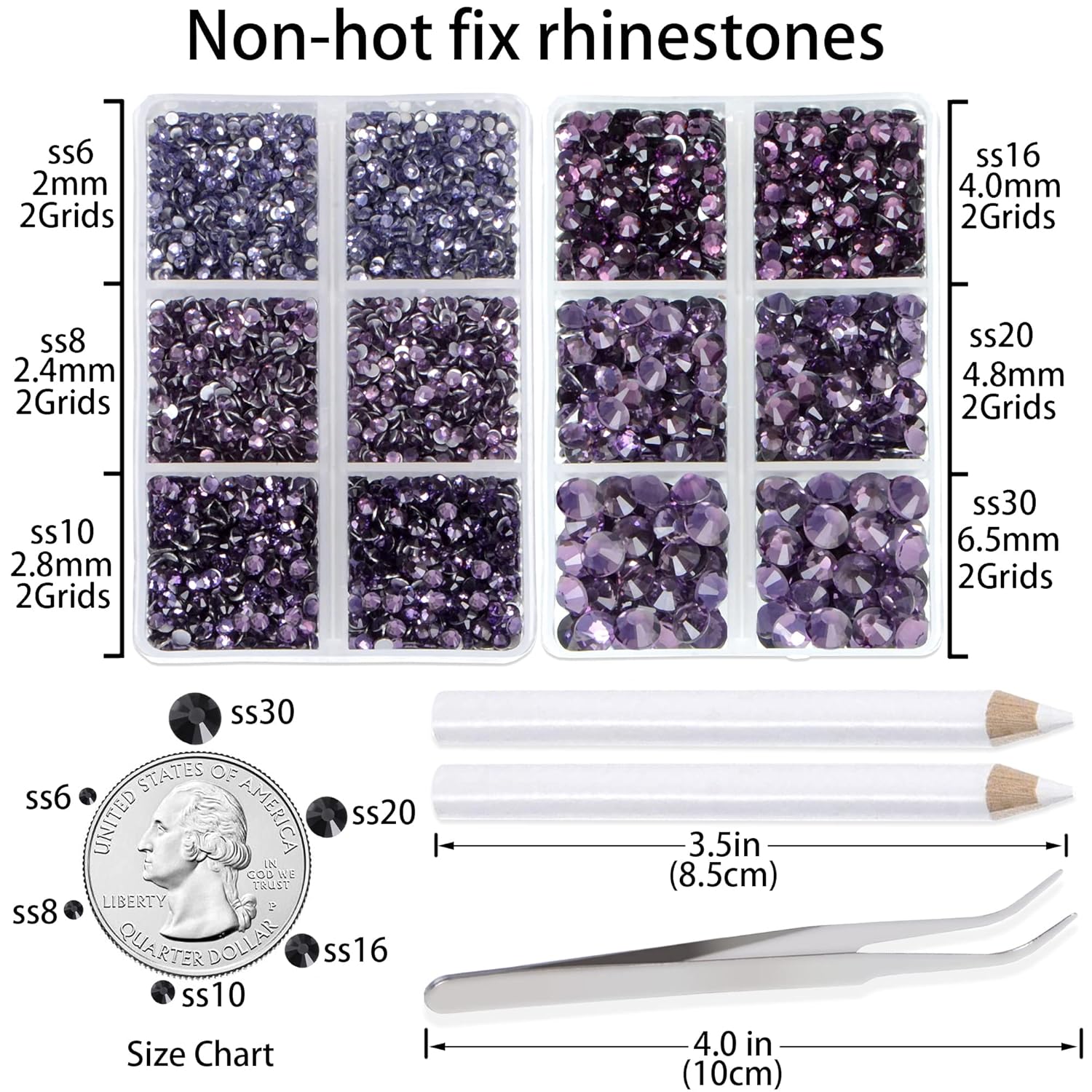 LPBeads 6000 Pieces Tanzanite Non Hotfix Rhinestones 6 Sizes Round Crystal Glass Flat Back Rhinestones with Tweezers and Picking Pen for Nail Art Crafts Clothes Bags DIY