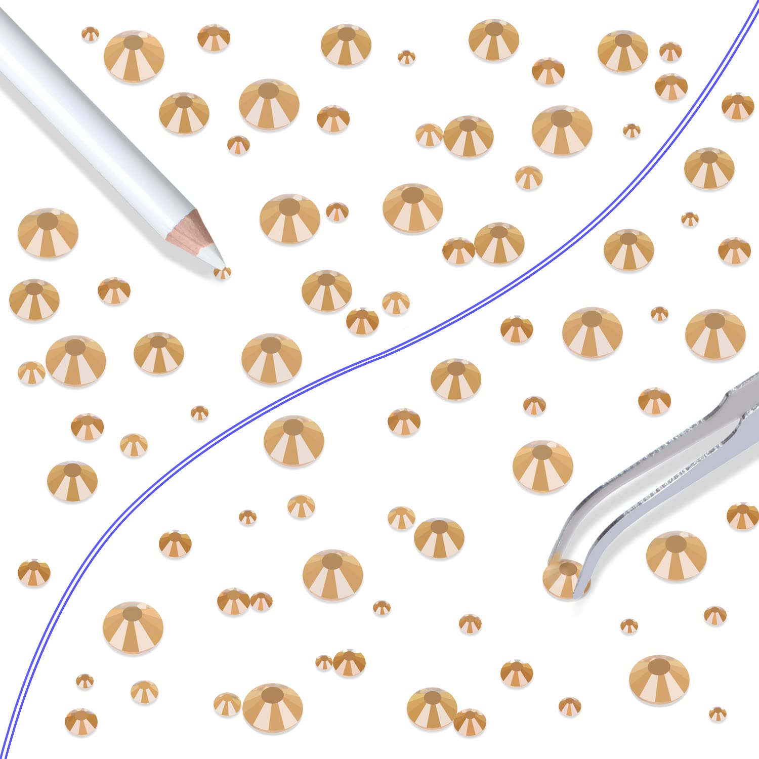 - Approx 6000 pcs of good quality sparkly flatback glass rhinestones with tweezers and 2 picker wax pencils help you easily pick up and set rhinestones in all your jewelry.