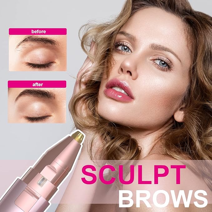 Eyebrow Razor & Facial Hair Removal for Women (2 in 1, USB Rechargeable), 100% Painless Hair Removal, Eyebrow Trimmer and Hair Remover Kit with Light for Eyebrow, Face Peach Fuzz, Lips, Body (Pink)