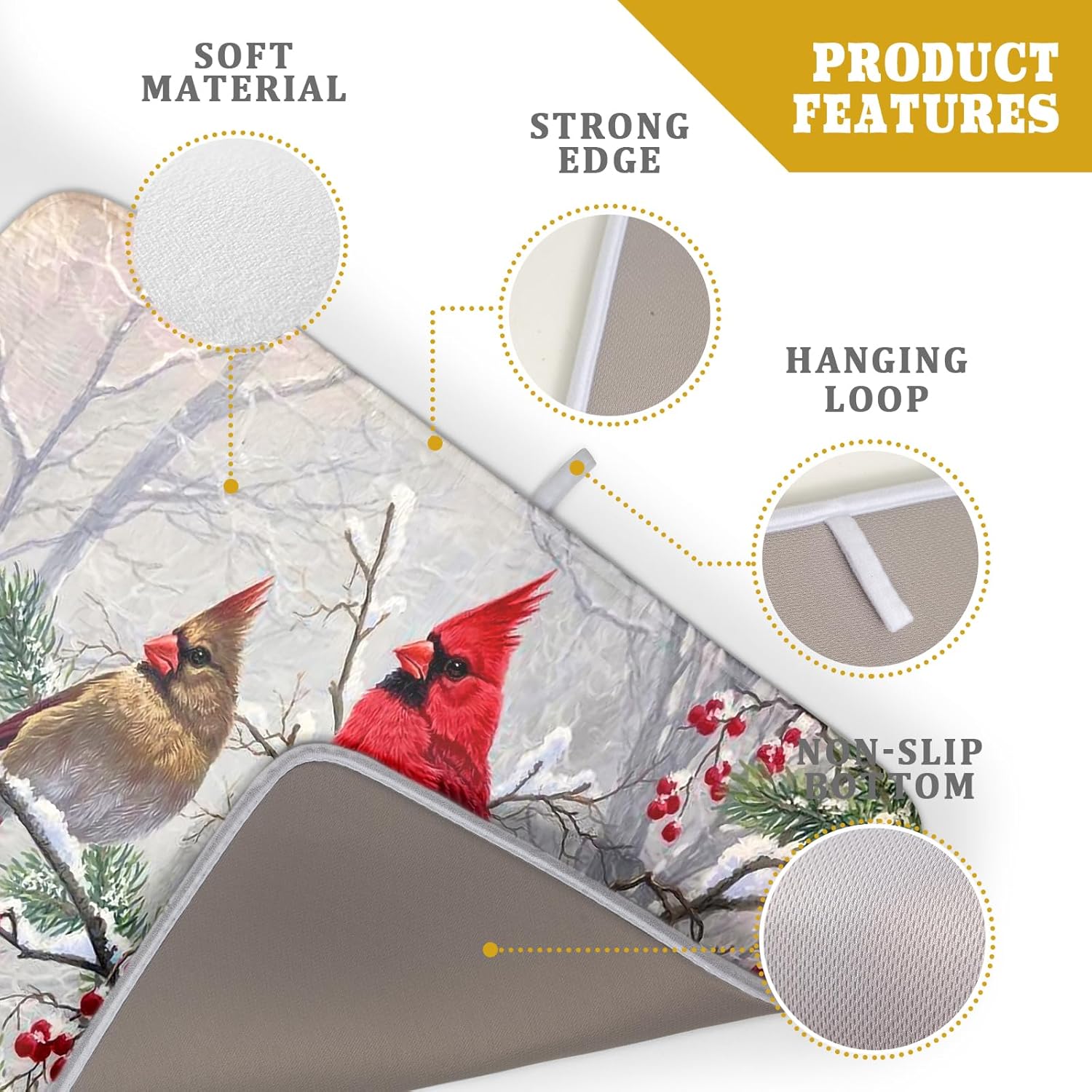 - 【Easy to Storage】This winter bird design drying mat with hang rope, soft and foldable, durable, easy to storage it by hanging or folding it up in a drawer or tuck it elsewhere. Perfect for tight spaces like campers, boats and cottages where having a dual purpose item will come in handy.