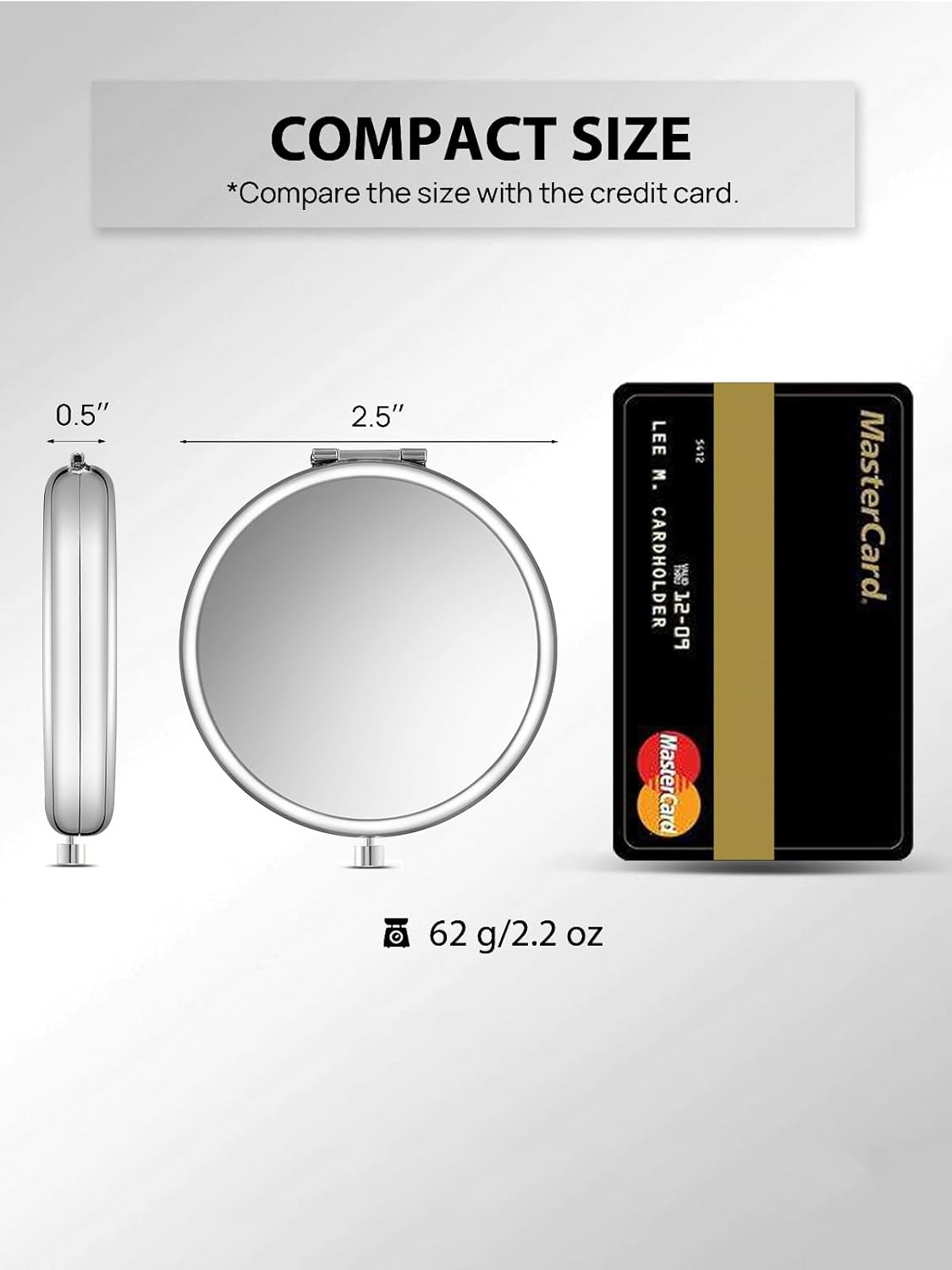 - PORTABLE SIZE & 7 COLORS AVAILABLE: Small mirror that is only 2.5 inches in diameter. Fits nicely in your bag, purse, or even your pocket - seven colors to choose from Gold, Rose Gold, Onyx Black, Pink, Silver, Cyan and Light Blue