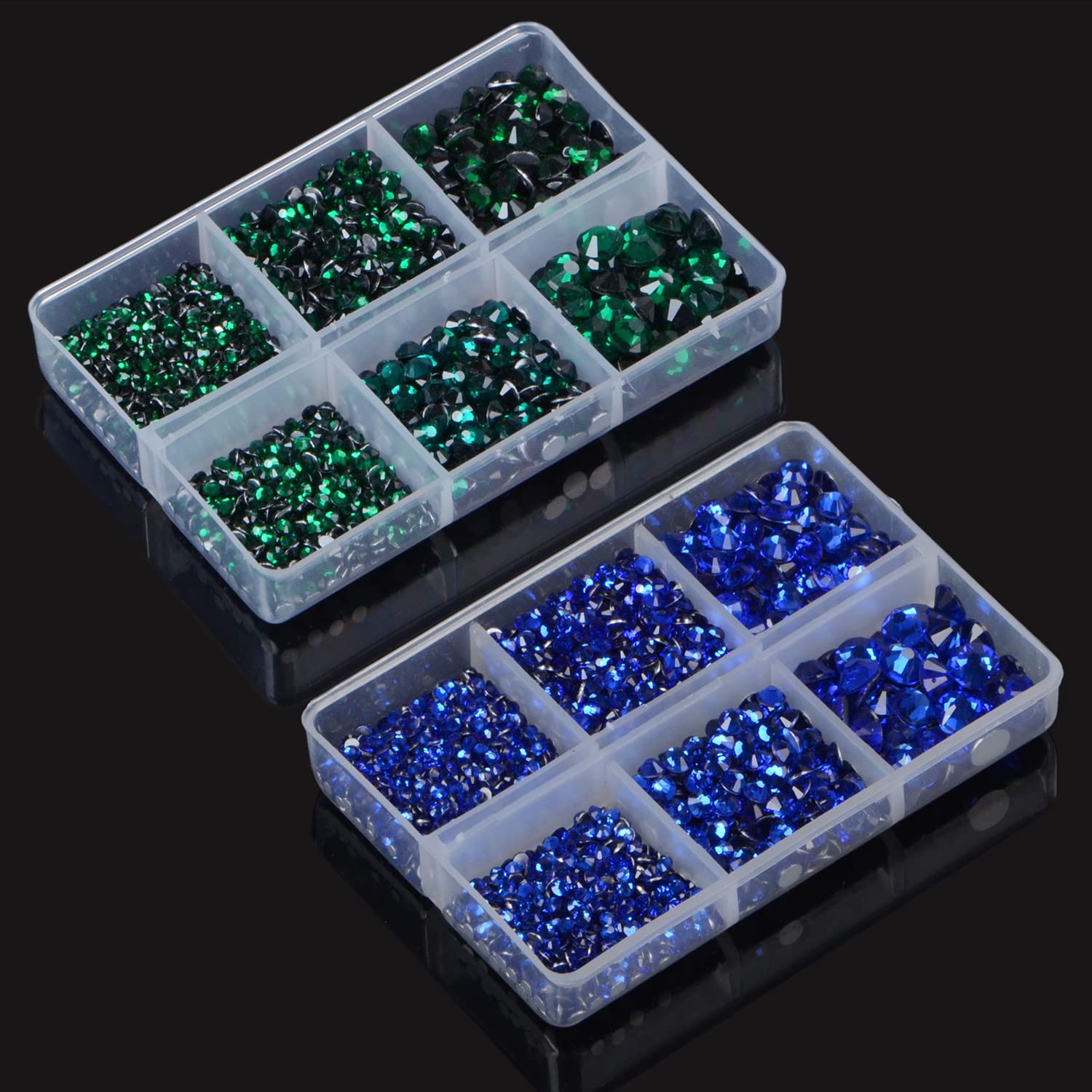 LPBeads 6000 Pieces Emerald and Sapphire Non Hotfix Rhinestones 6 Sizes Round Crystal Glass Flat Back Rhinestones with Tweezers and Picking Pen for Nail Art Crafts Clothes Bags DIY
