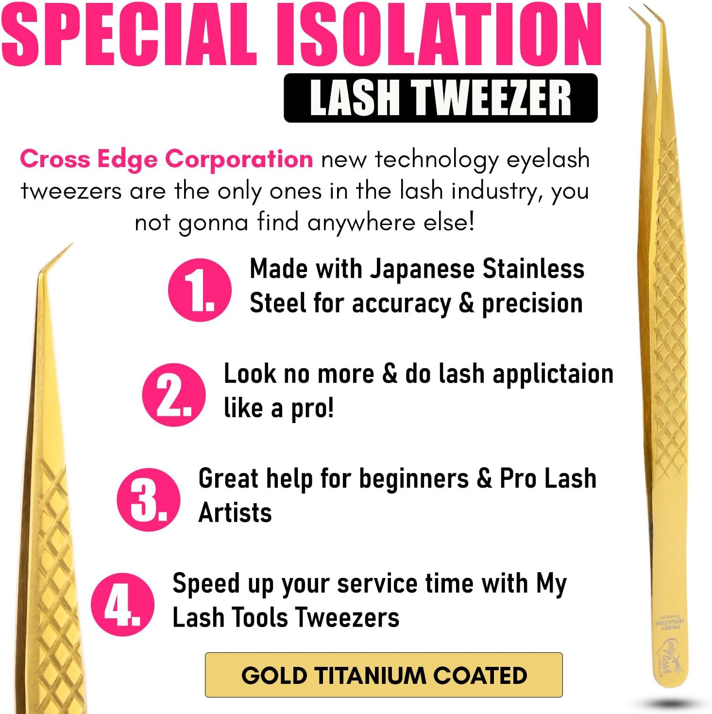 Curved Isolation Tweezers for Lash Extensions – Diamond Grip, Stainless Steel 14cm Best for Individual Isolation & Classic pinzas para pestaña (Gold titanium)