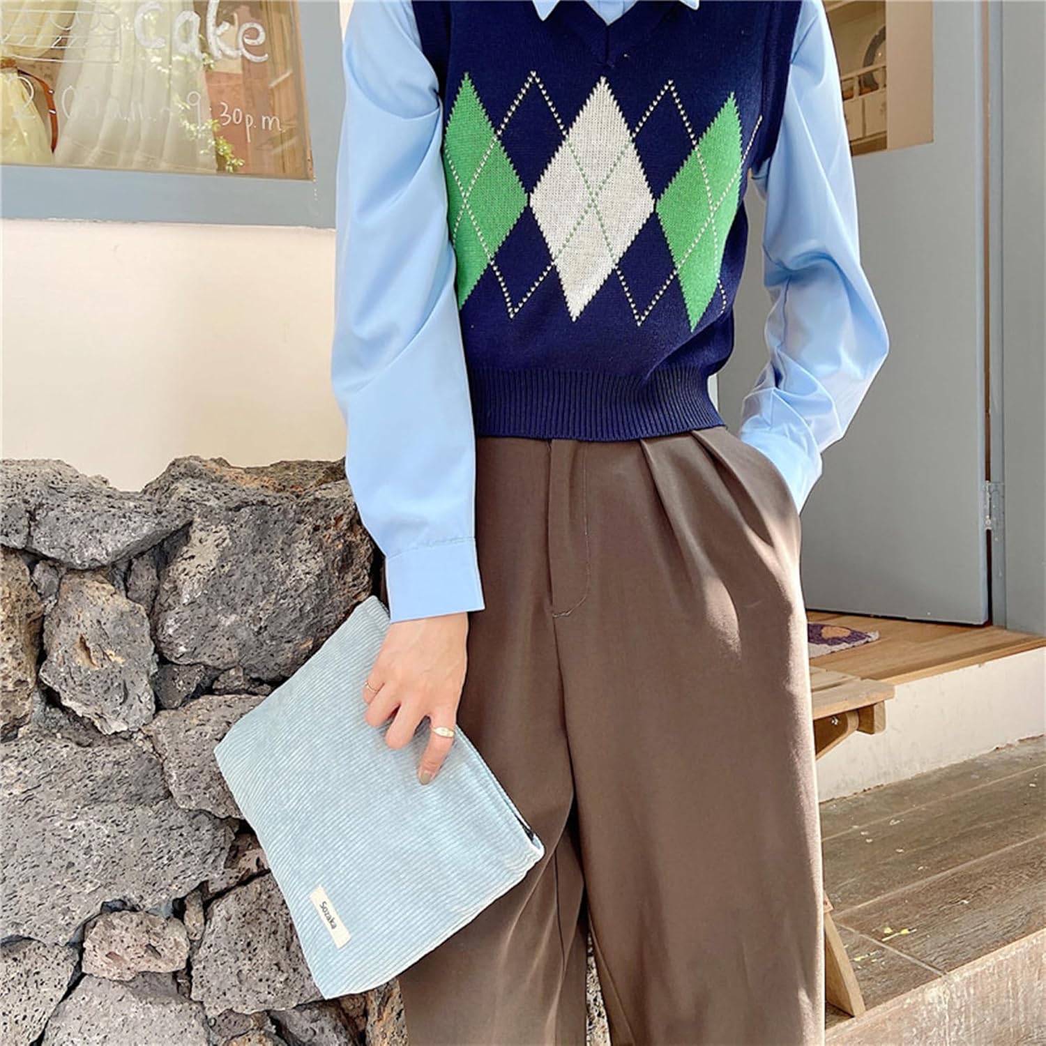 Cosmetic Bags for Women - Corduroy Cosmetic Bag Aesthetic Women Handbags Purses Smile Dots Makeup Organizer Storage Makeup Bag Girls Case Bags (Pure Light blue)