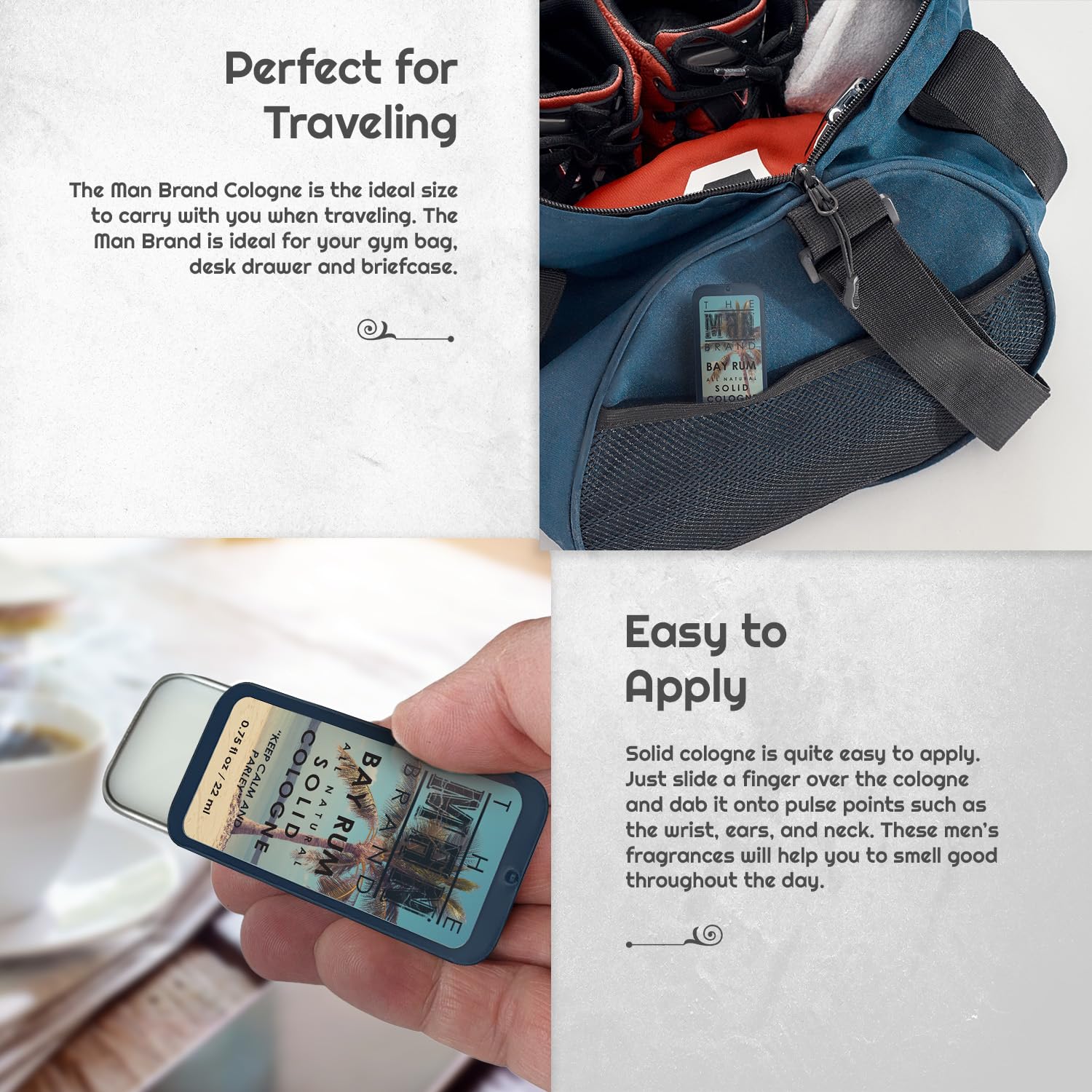 Bay Rum Solid Cologne - Natural Men's Bay Rum Cologne - Redefined men's fragrance Bay Rum Wax Cologne, Bay Rum Travel Size Cologne for men - Bay Rum Solid Cologne for men (3/4 oz (Pack of 1), Bay Rum)