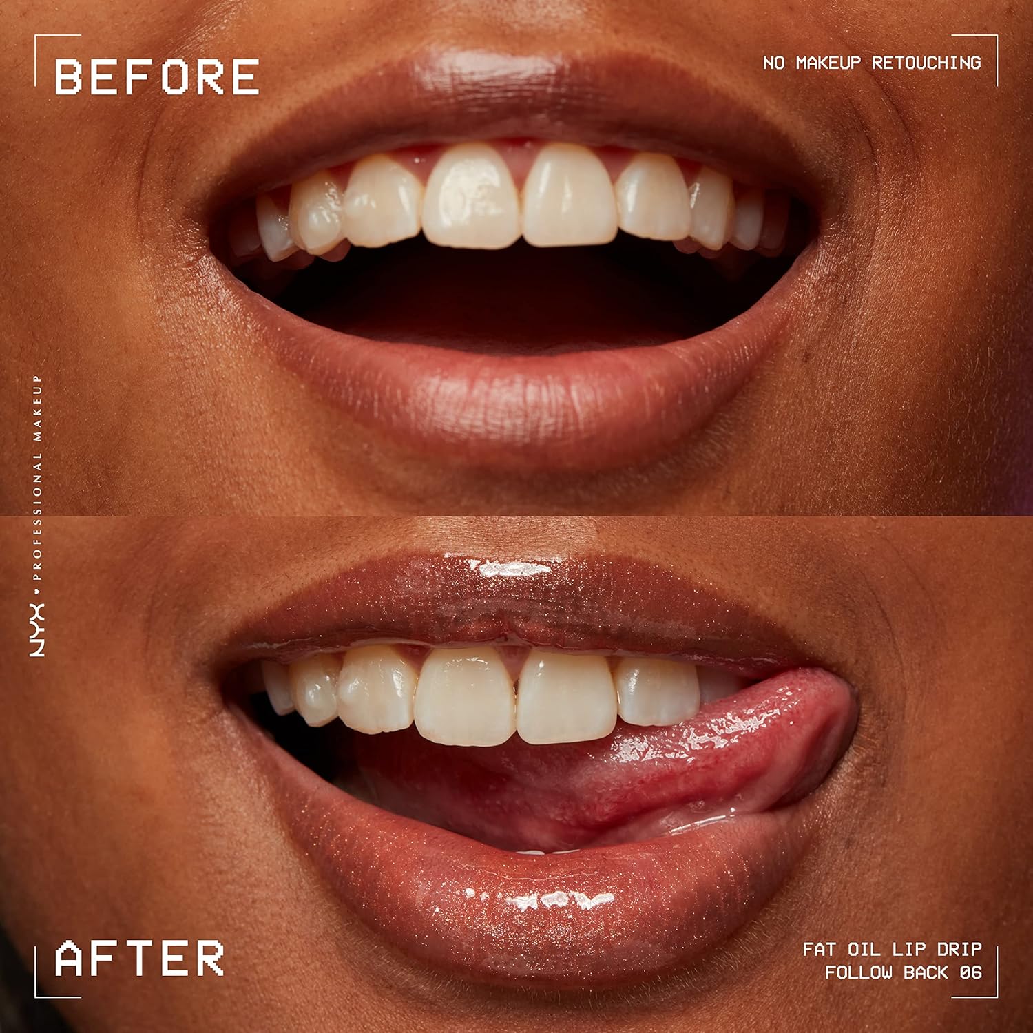 NYX PROFESSIONAL MAKEUP Fat Oil Lip Drip, Moisturizing Lip Oil Gloss, Vegan Tinted Formula, Up to 12 HR Hydration - Follow Back (Shimmering Warm Nude)