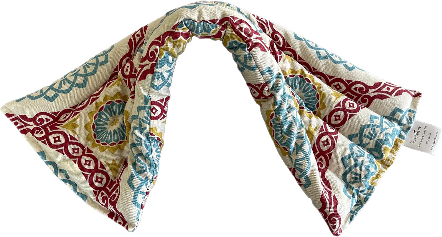 • EASY TO USE: Enjoy the convenience of Sacksy Thyme's easy-to-use aromatherapy heating pad. Simply place the cherry pit and flaxseed-filled pad in the microwave for just 90 seconds, and experience the soothing relief it provides. natural heating pad is designed to alleviate various discomforts such as muscle aches, back pain, neck and shoulder pain, cramps, and stress.