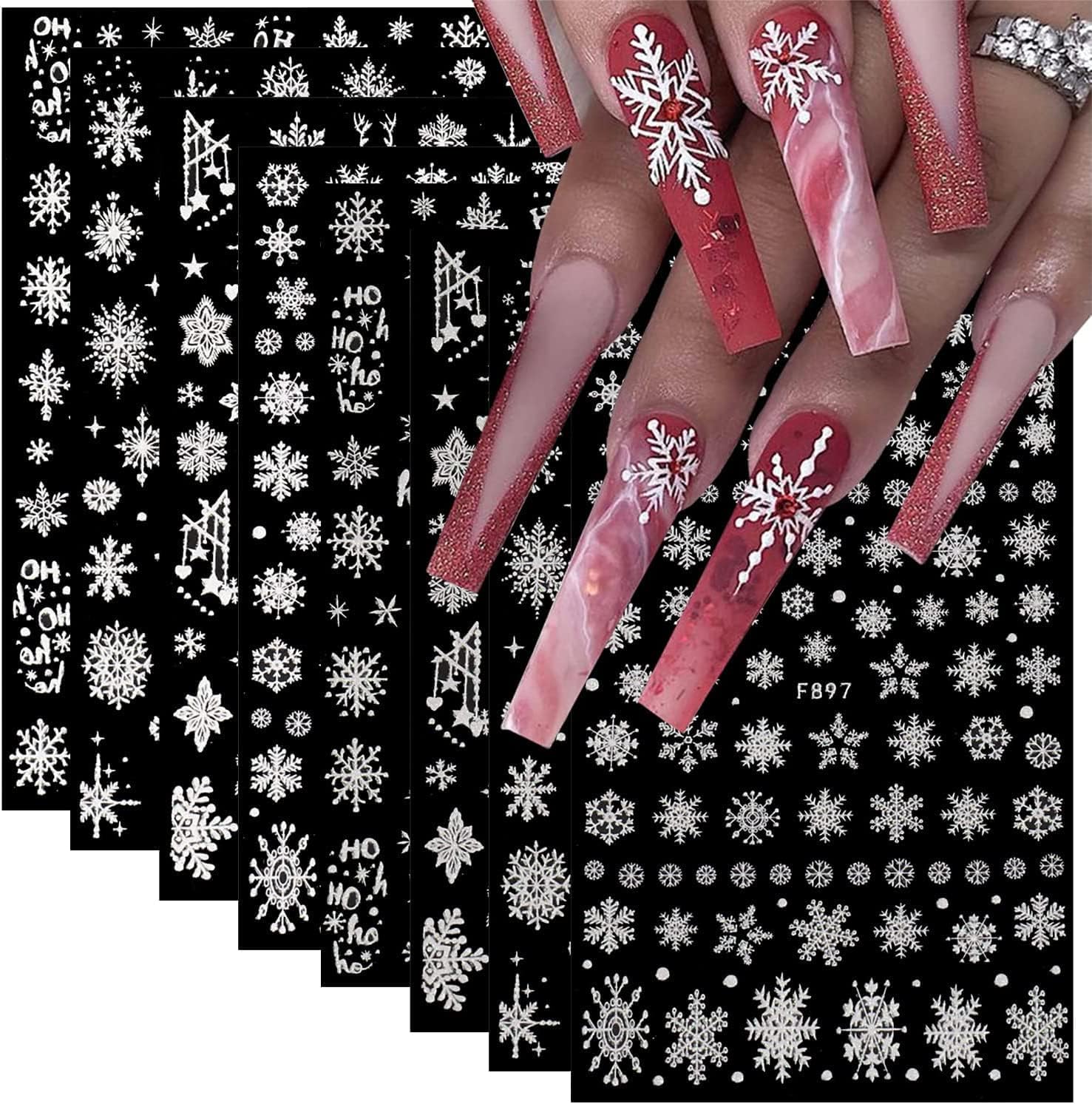 - 【Snowflake Nail Art Accessories】- You will receive 8 sheets 3D Snowflakes nail stickers, You can choose different patterns to decorate your nails, create a variety of dazzling Christmas nail designs, each paper size is 3.9 x 3.1 inches.