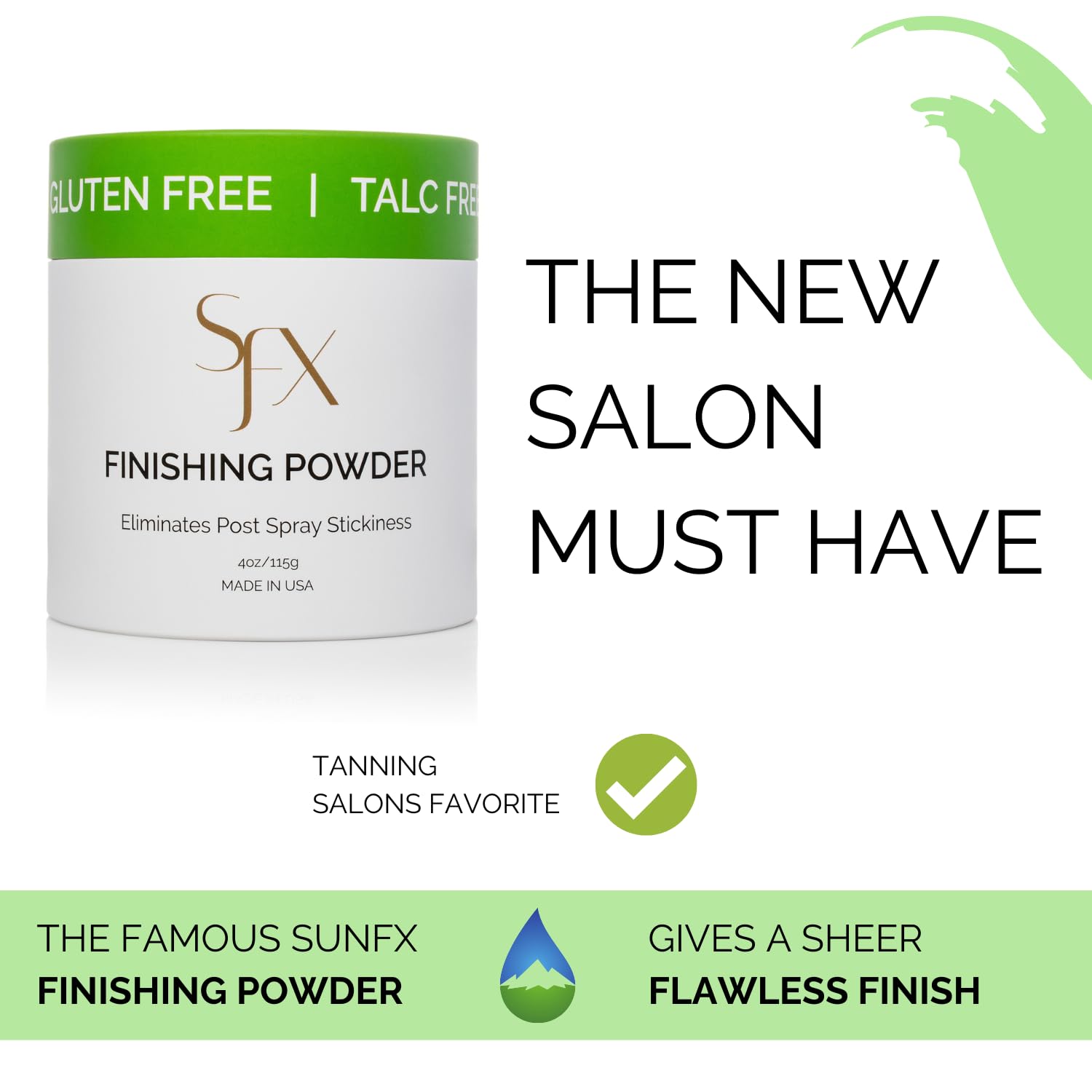 - WHEN TO USE Use SunFX Spray Tan Finishing Powder after completion of a spray tan to add that extra luxurious touch to your clients tanning experience. Perfect for at home self-tanning applications to help set you bronzed glow. Take to your spray tan session and apply with one of our large fan powder brushes