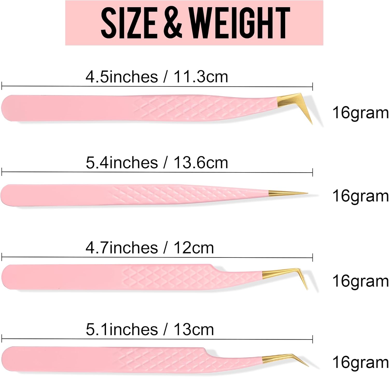 Fiber Tip Lash Tweezers For Eyelash Extension 4 Pcs Tweezers Professional Artist Tech Work Kit Tools,Best Volume Eyelash Lashes Extensions Precision Supplies Volume Boot 90 45 Degree(Pink)