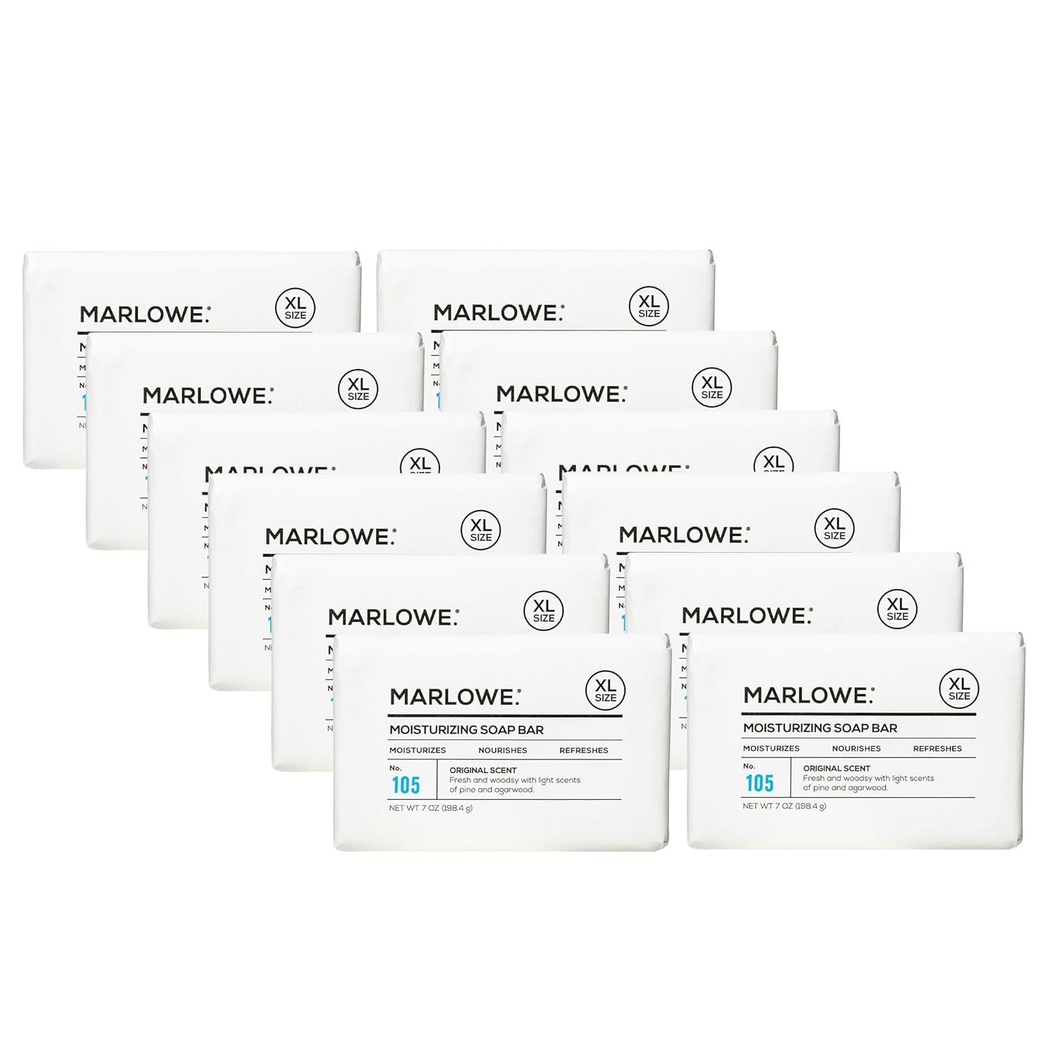 MARLOWE. No. 105 Bar Soap for Men 7 oz (12 Bars) Moisturizing Body Soap, Nourishing & Refreshing with Natural Extracts, Shea Butter, Olive Oil & Green Tea Extracts, Original Sage & Fir Scent