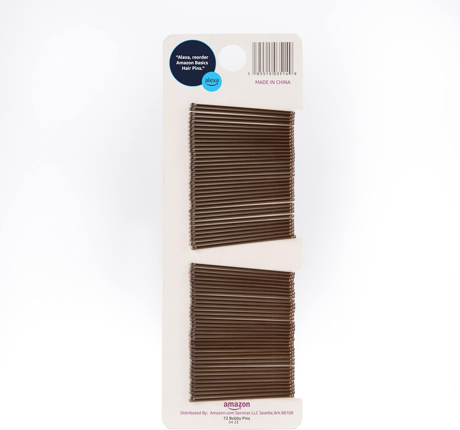 Amazon Basics Bobby Pins, Brown Hair Pins for all Hair types, 72 Count