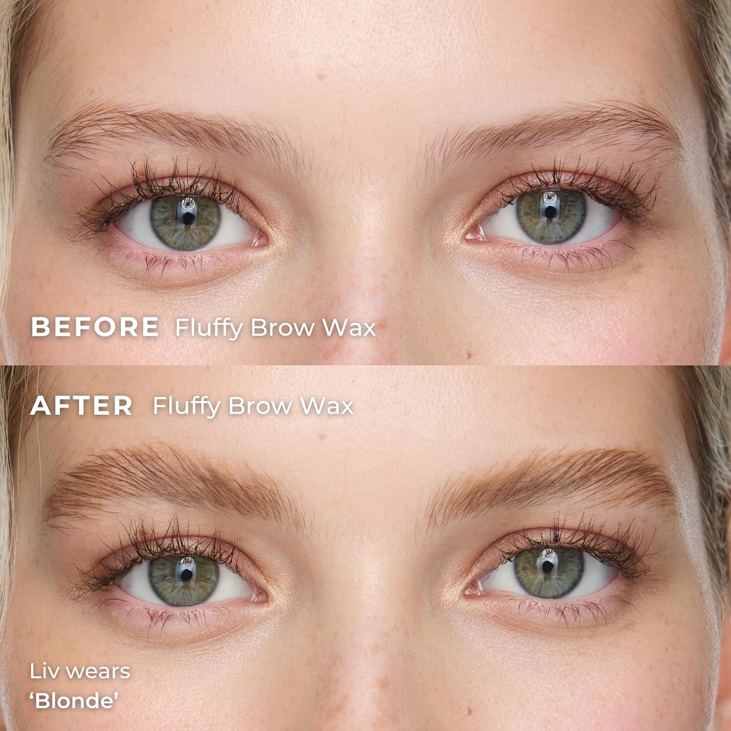 - Fluffy Brow Wax is a liquid wax tint that fills, fluffs and thickens your brows with a natural looking finish.