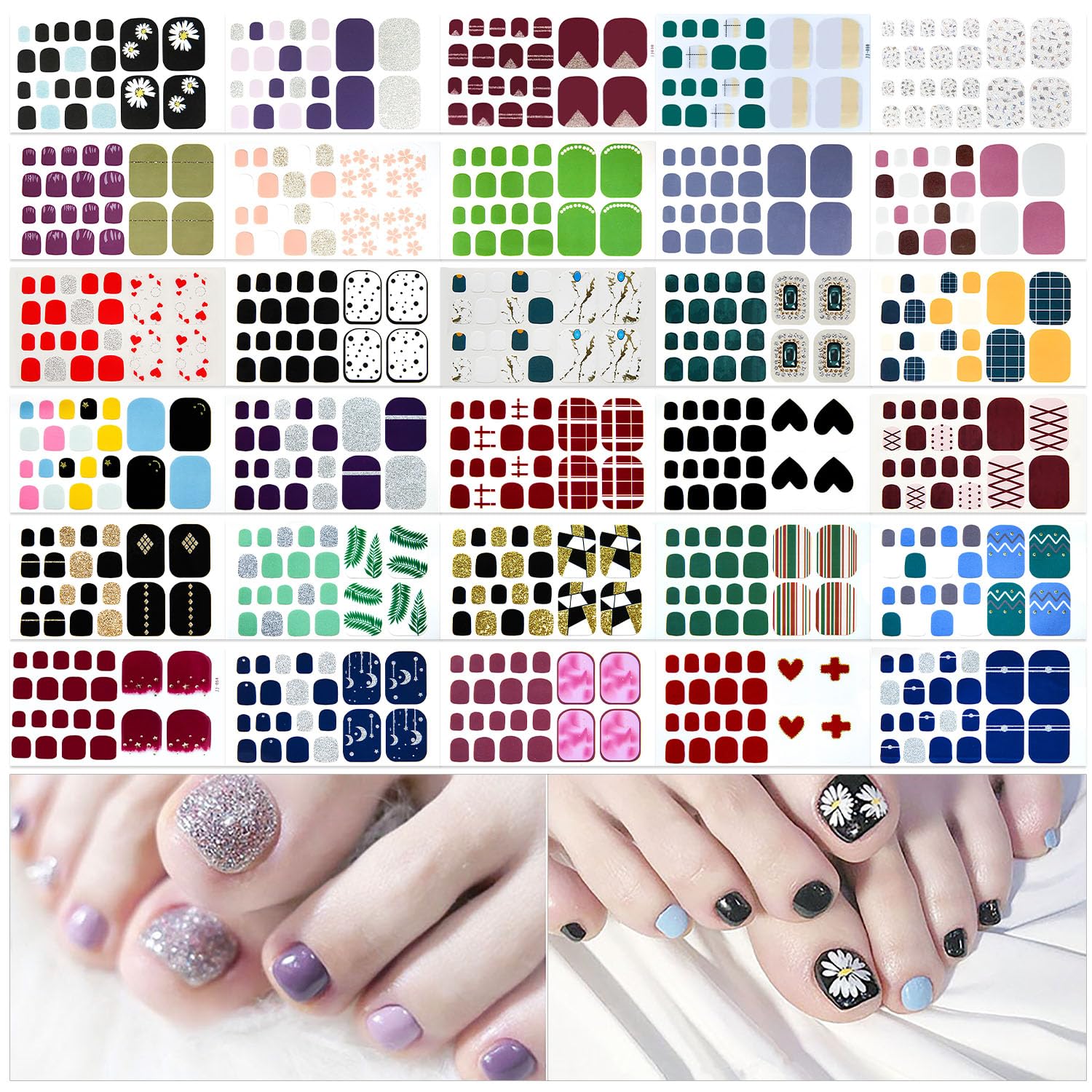 - [Package Included] 30 sheets toenails polish strips + 2pcs nail files, each nail strips has 22 pieces nail tips and 11 sizes, suitable for most people's nail size.