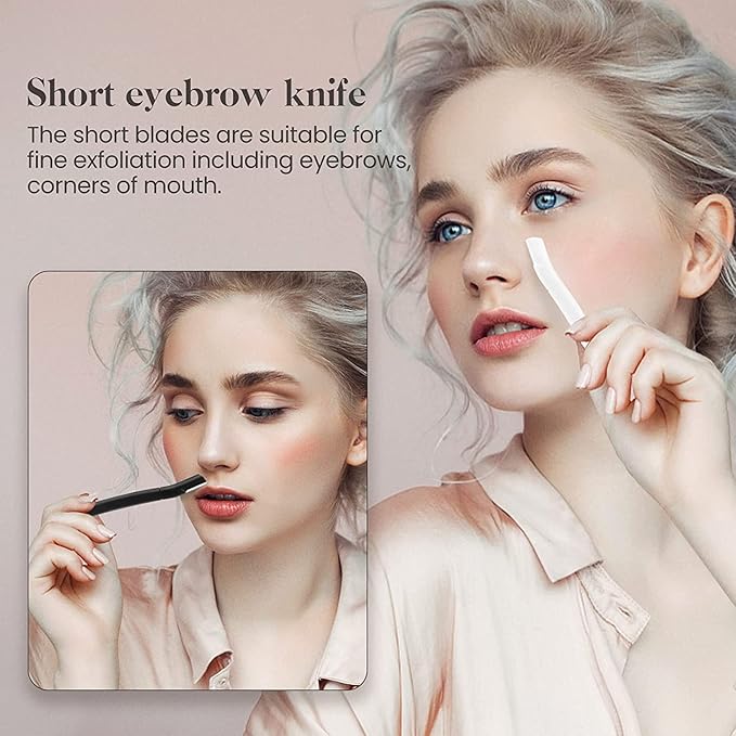 - ♥ Multipurpose Eyebrow Razor - This is a multi-purpose tool that not only trims eyebrows, exfoliates, but also removes excess hair from the forehead, cheeks, chin, upper lip, women's bikini, neck or other areas.