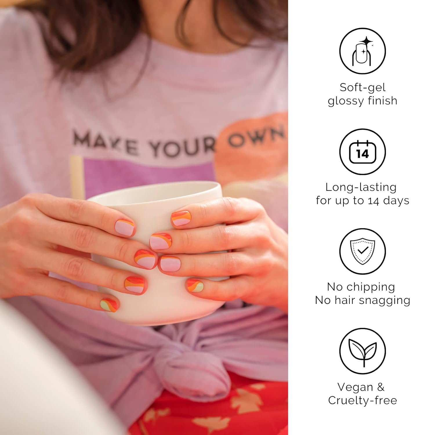 - 【SALON QULITY】 Made of real nail polish 60% precured, soft to fit all nail shapes - Nailog semi-cured strips with waterproof top gel last up to 2 weeks once cured with a UV lamp. - Our gel nails are also extremely lightweight so they do feel like your own nails!