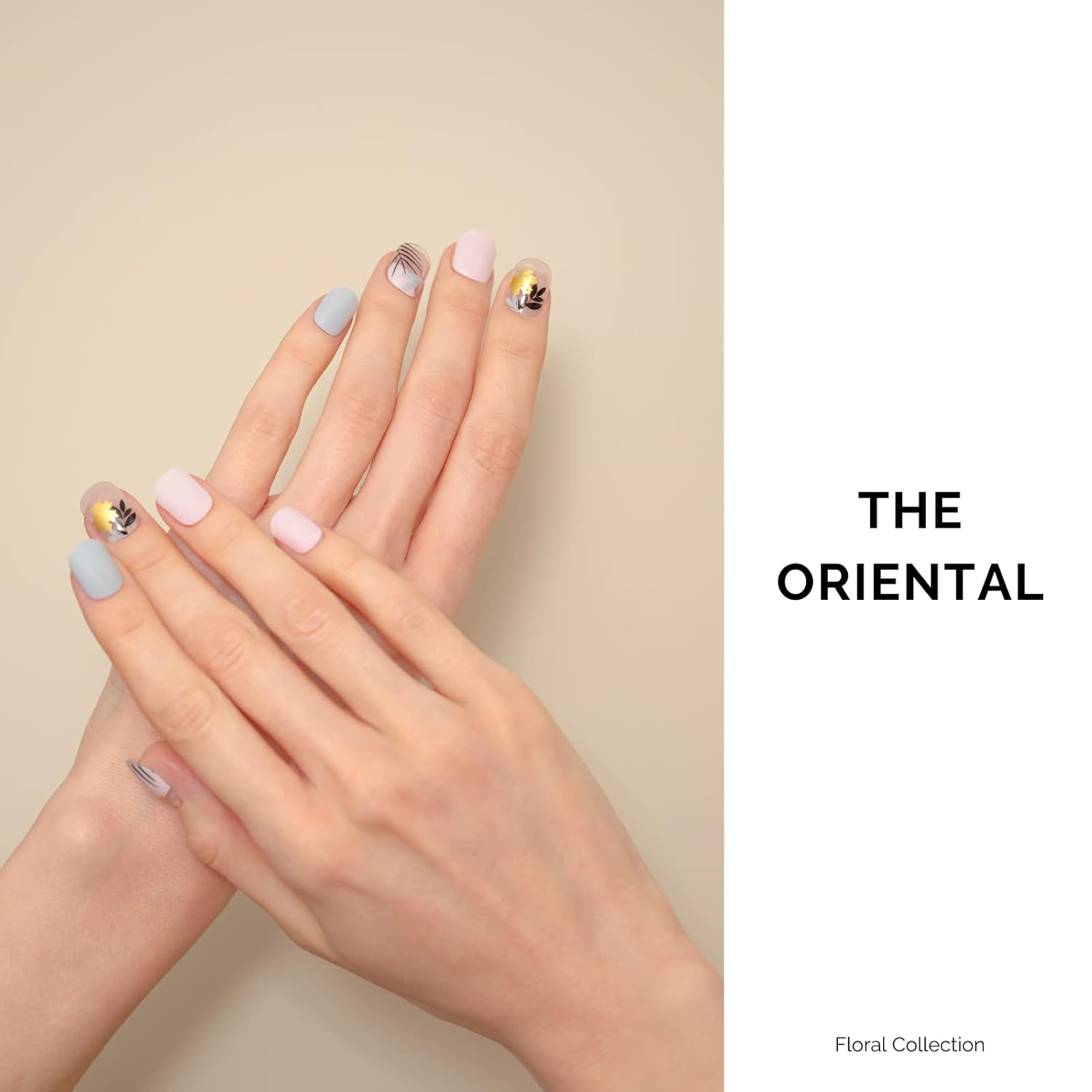 NAILOG Semi Cured Gel Nail Strips, 34 pcs Salon-Quality Gel Nail Stickers, Long Lasting Nail Wraps for Women with Soft Gel Finish | The Oriental