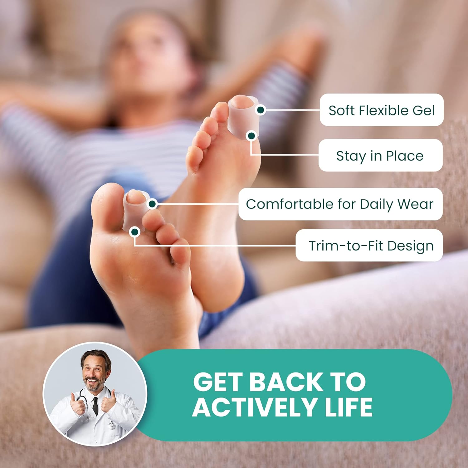 - Convenient Sizes: The gel toe protector set includes 2 pairs (large size) and 4 pairs (small size) that can be easily trimmed to fit perfectly on your toes. These silicone toe sleeves are washable and reusable and can be used by both men and women.