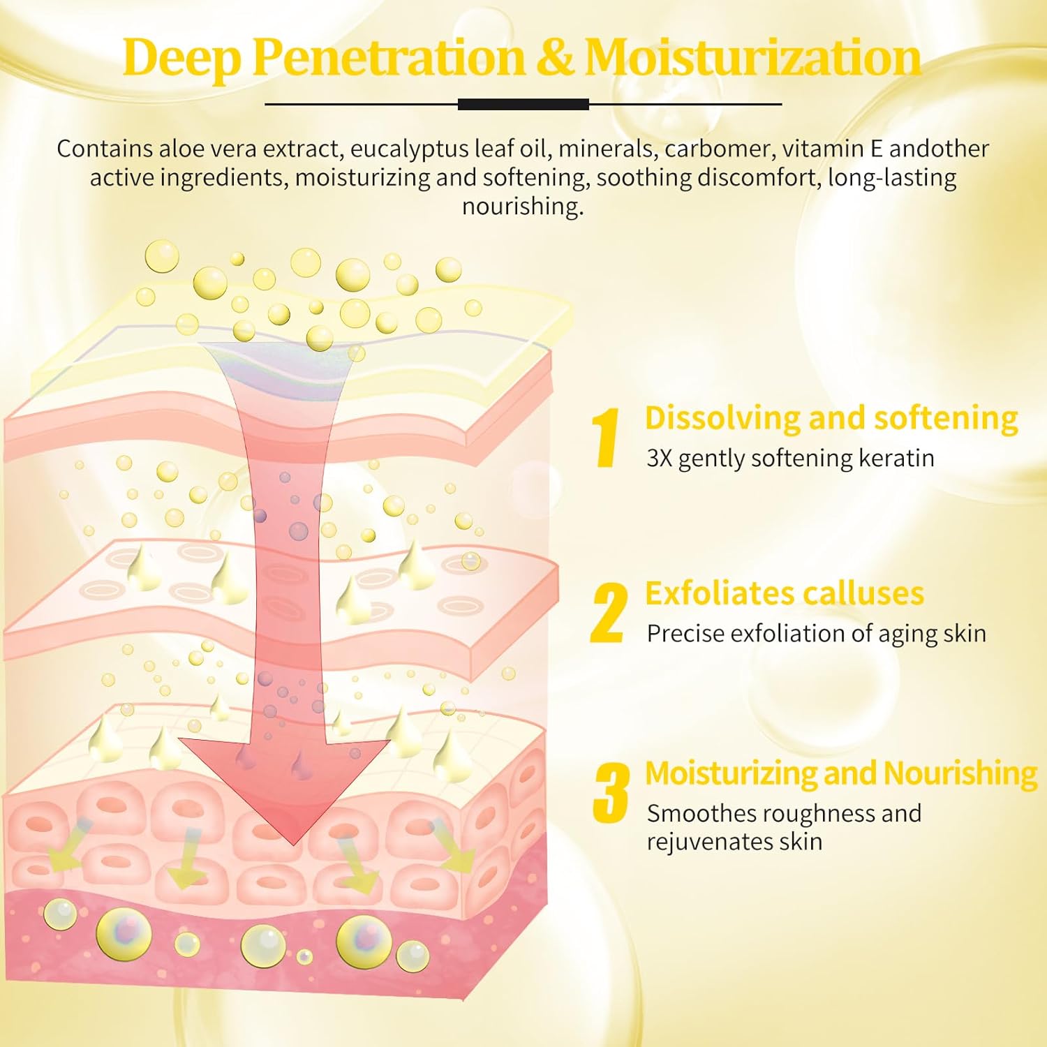 - Product Benefits : Nourishes and softens dry, rough, cracked skin and fine lines, providing a baby soft smooth feet feeling with natural ingredients. Nourishes and softens dry, rough, cracked skin and fine lines, providing a baby soft smooth feet feeling with natural ingredients.