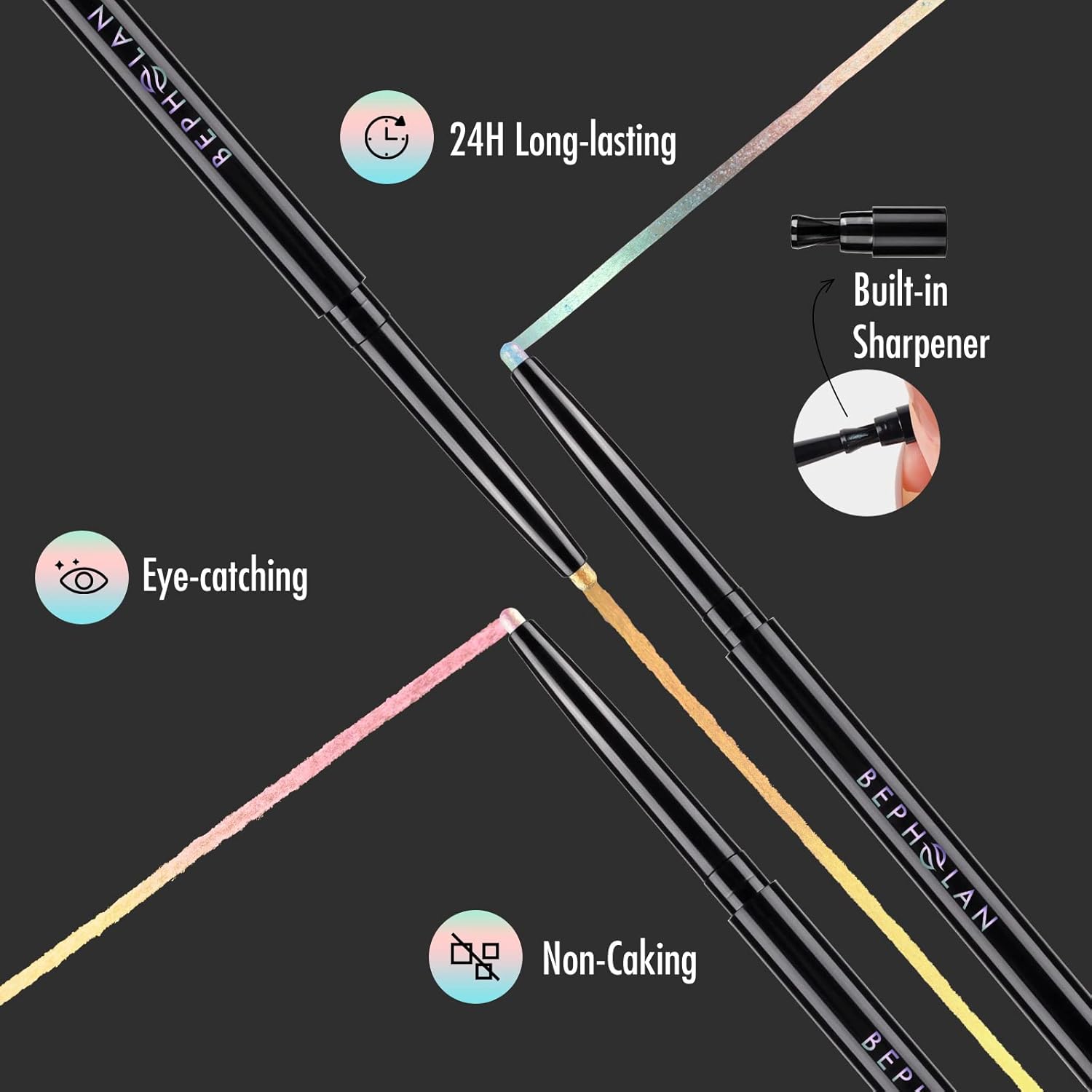 - VEGAN & UPGRADING - After many experiments and repeated tests, the chameleon eyeliner has been developing new colors and increasing the new eyeliner's softness and the color's richness. I look forward to your more evaluations and making BEPHOLAN better