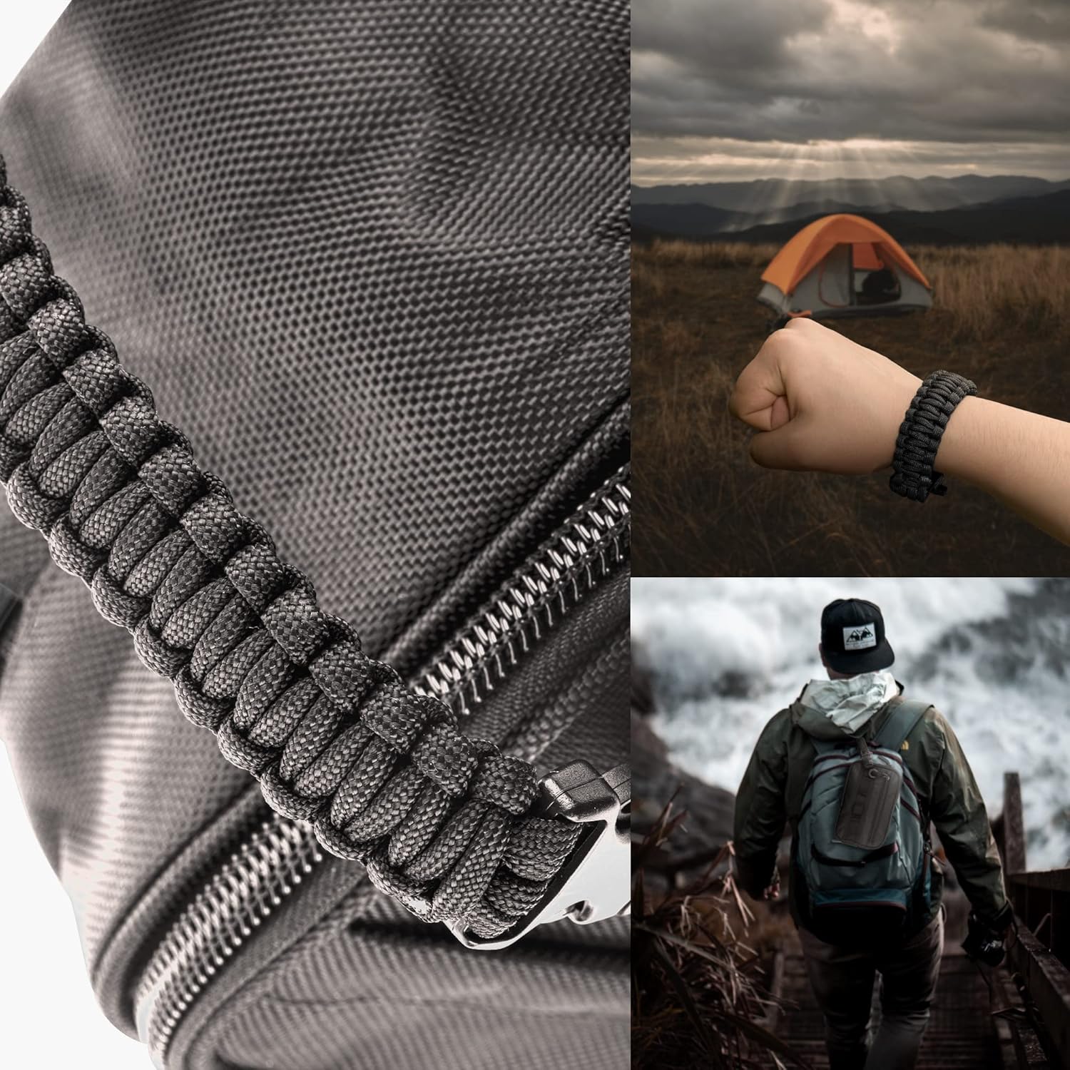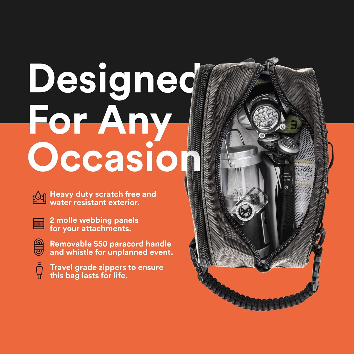• DESIGNED FOR ANY OCCASION – Tactical inspired design that not only serves you in the hotel room but also in the unknown wilderness. The side molle webbing allows you to add tools & gadgets for quick access, or even pouch for additional carry capacity. The handle is made from detachable 550 paracord and whistles for emergencies because anything can happen. Heck! We also give a FREE Tactical Carabiner.
