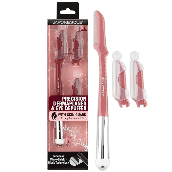 - TWO BEAUTY TOOLS IN ONE - The JAPONESQUE Dermaplaner and Cooling Eye Roller is an all-in-one skin care tool. The dermaplaning tool removes unwanted hair & exfoliates skin, and the cooling eye roller reduces redness and puffiness.