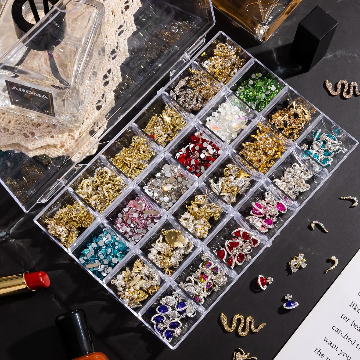Noverlife 24 Grids Clear Plastic Organizer Box, Storage Container Jewelry Box, Empty Earring Storage Organizer Display Case, Transparent Plastic Nail Art Decorations Container for Bead Rings Earrings