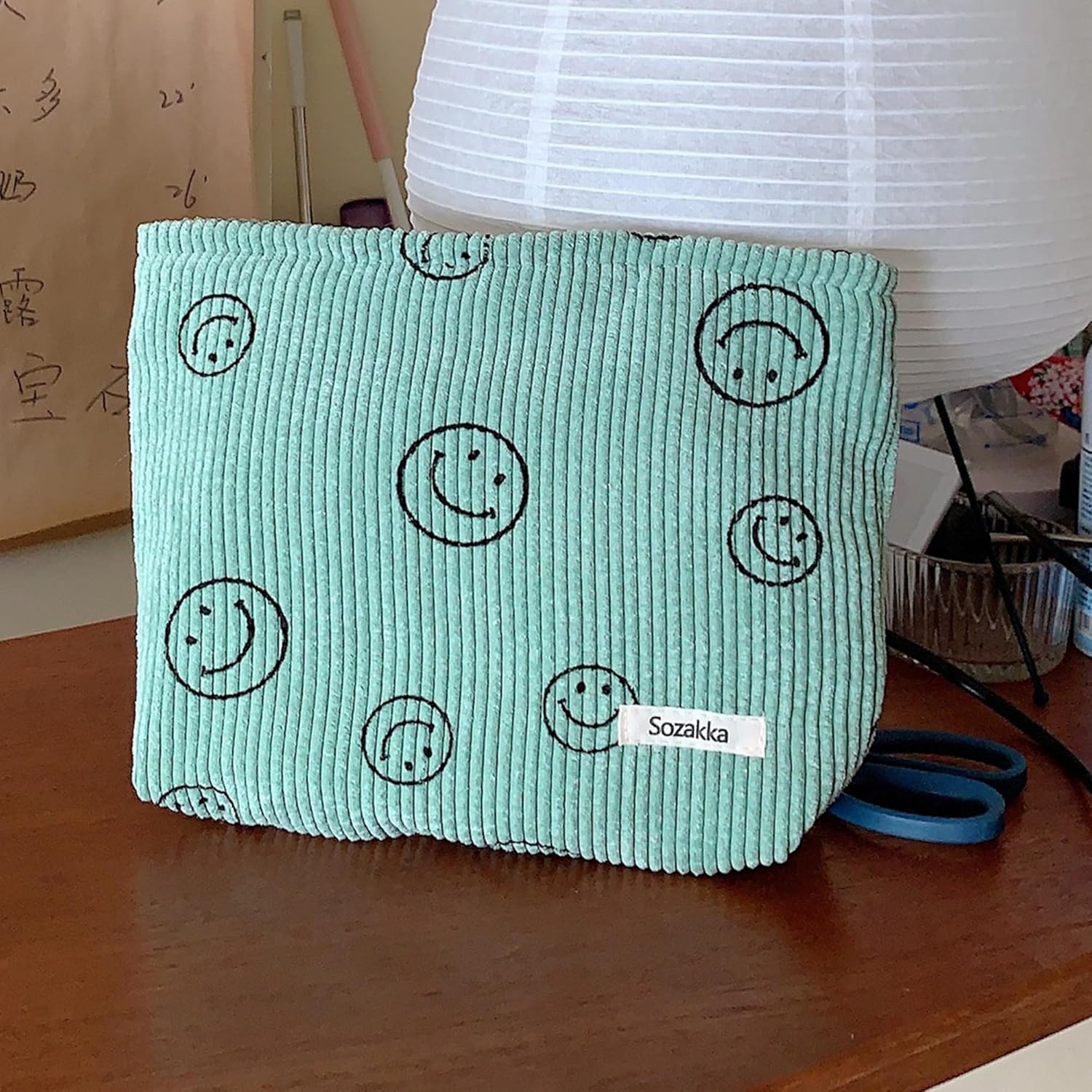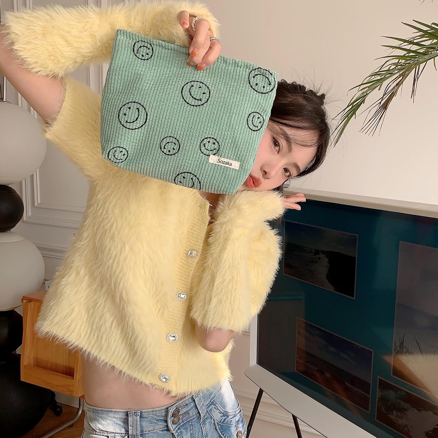 Cosmetic Bags for Women - Corduroy Cosmetic Bag Aesthetic Women Handbags Purses Smile Dots Makeup Organizer Storage Makeup Bag Girls Case Bags (A-Green)