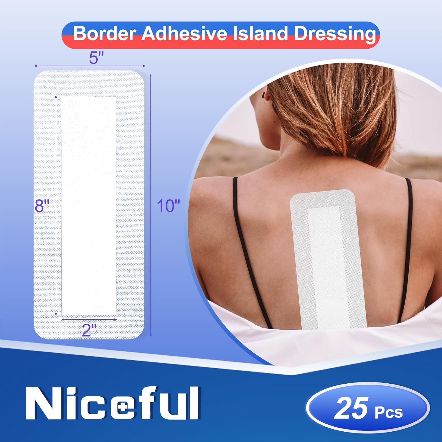 - 【All in One Protection】- As a great alternative to regular gauze pads and adhesive tape, Niceful Island Dressings with adhesive border can be used as primary or secondary dressing for wound care.The edges of the dressing is adhesive but not the absorbent core, providing a more comfortable protection while healing.