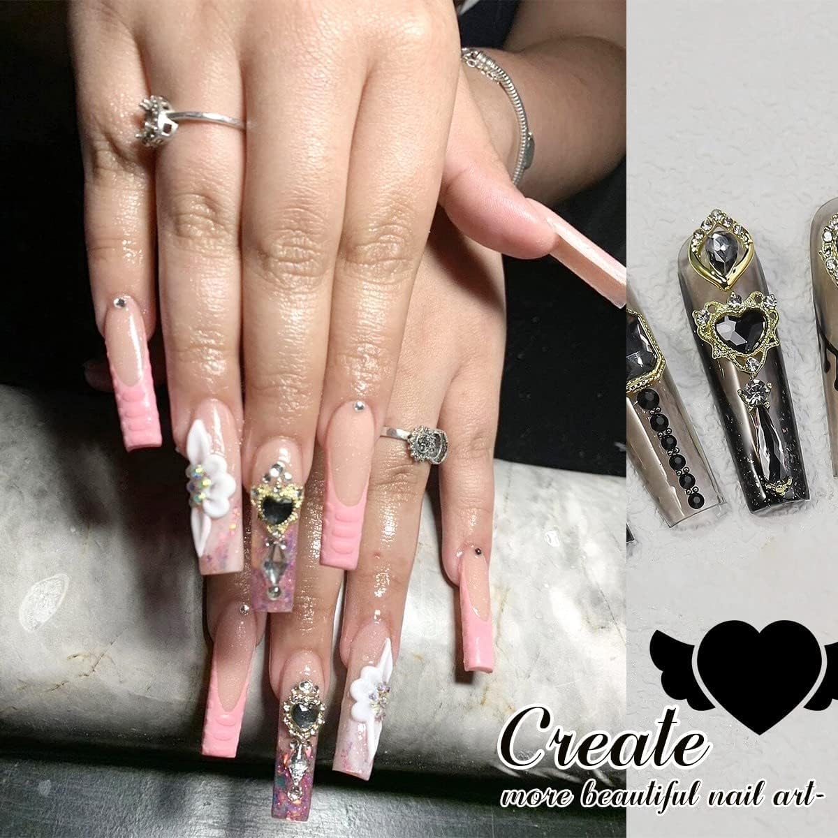 - ❤【Black Nail Gems for Multiple Uses & Safety Material】These 3D alloy Luxury rhinestone ornaments are not only used on decorations for nail art design, can also be Perfect for crafts, clothes, shoes, jewelry, mobile phone cases, bags, make your stuff more vivid. The Luxury nail gems are suitable for wedding, nail salon, party, leisure, office, and others. 3D acrylic nail accessories are made of environmentally friendly materials, No damage to fingernails, any style of nails can use it.