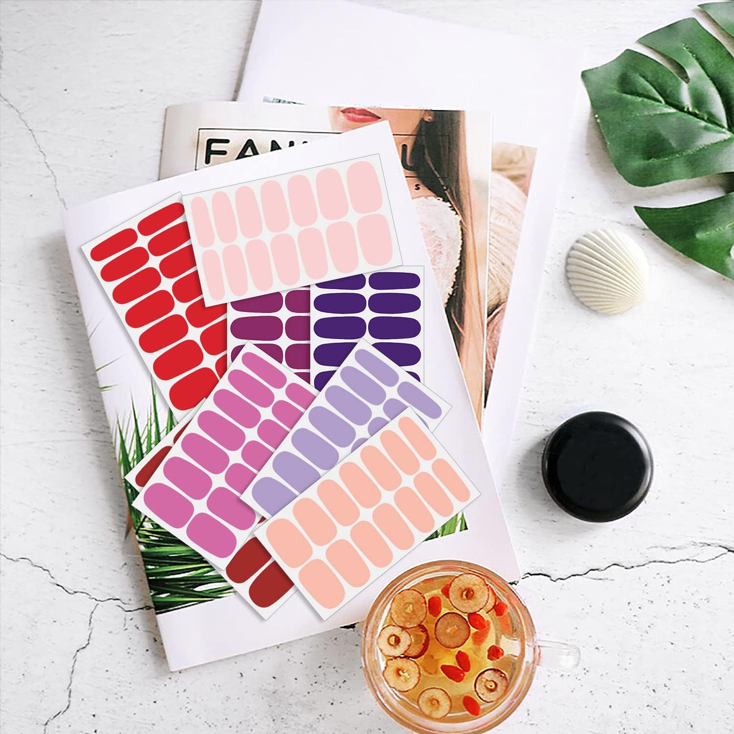 - [Package Included] 16 sheets solid color nail strips + 1pc nail files + 1pc wood cuticle stick. each nail strips has 14 pieces nail tips and 7 sizes, suitable for most people's nail size.