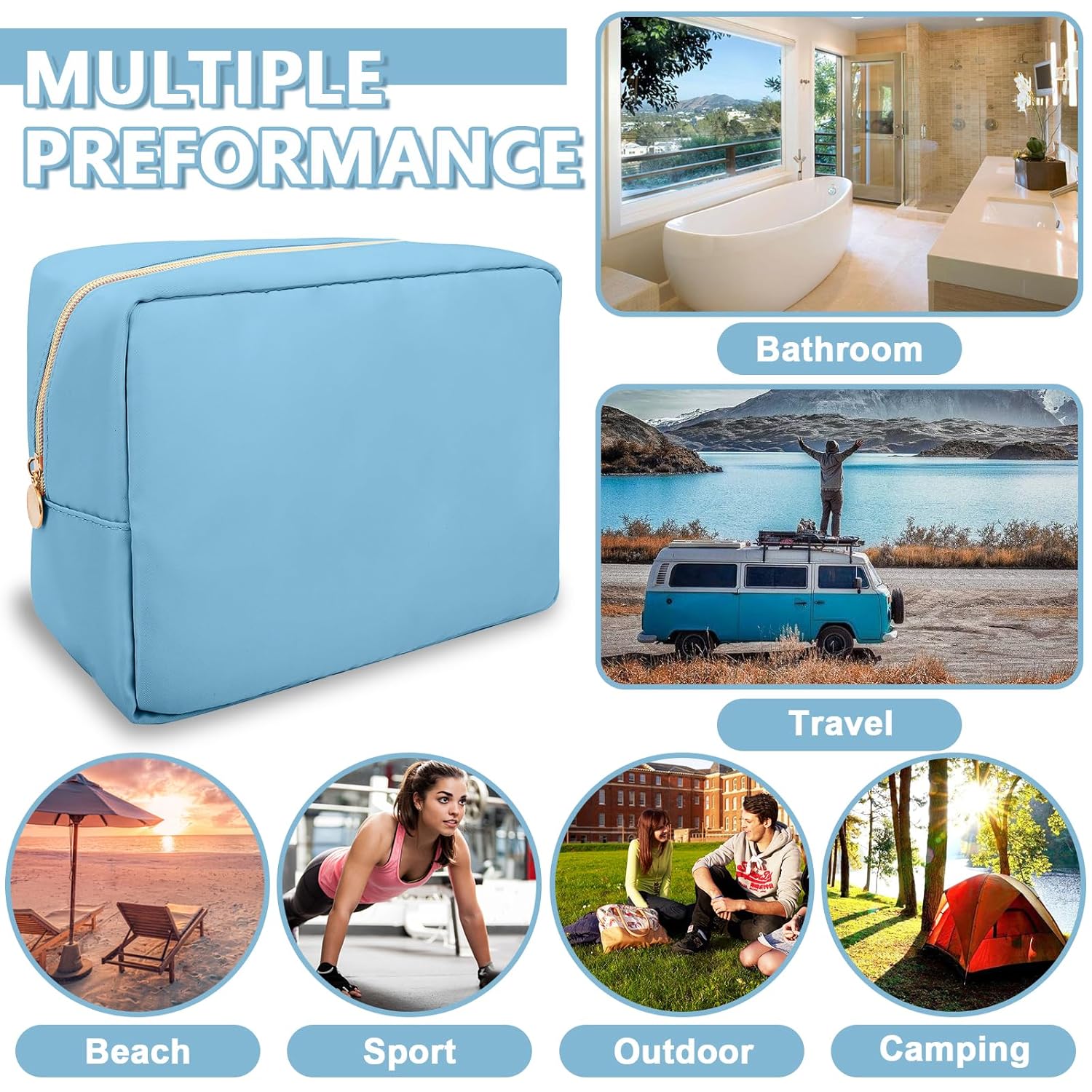 - 【Multi-purpose】The preppy makeup bag makes it easy to pack and carry cosmetics, jewelry, sanitary napkins, brushes, small electronic accessories, toiletries, medications, tools or other travel essentials. It's a great bag for travel, parties, camping, beach, gym, etc.