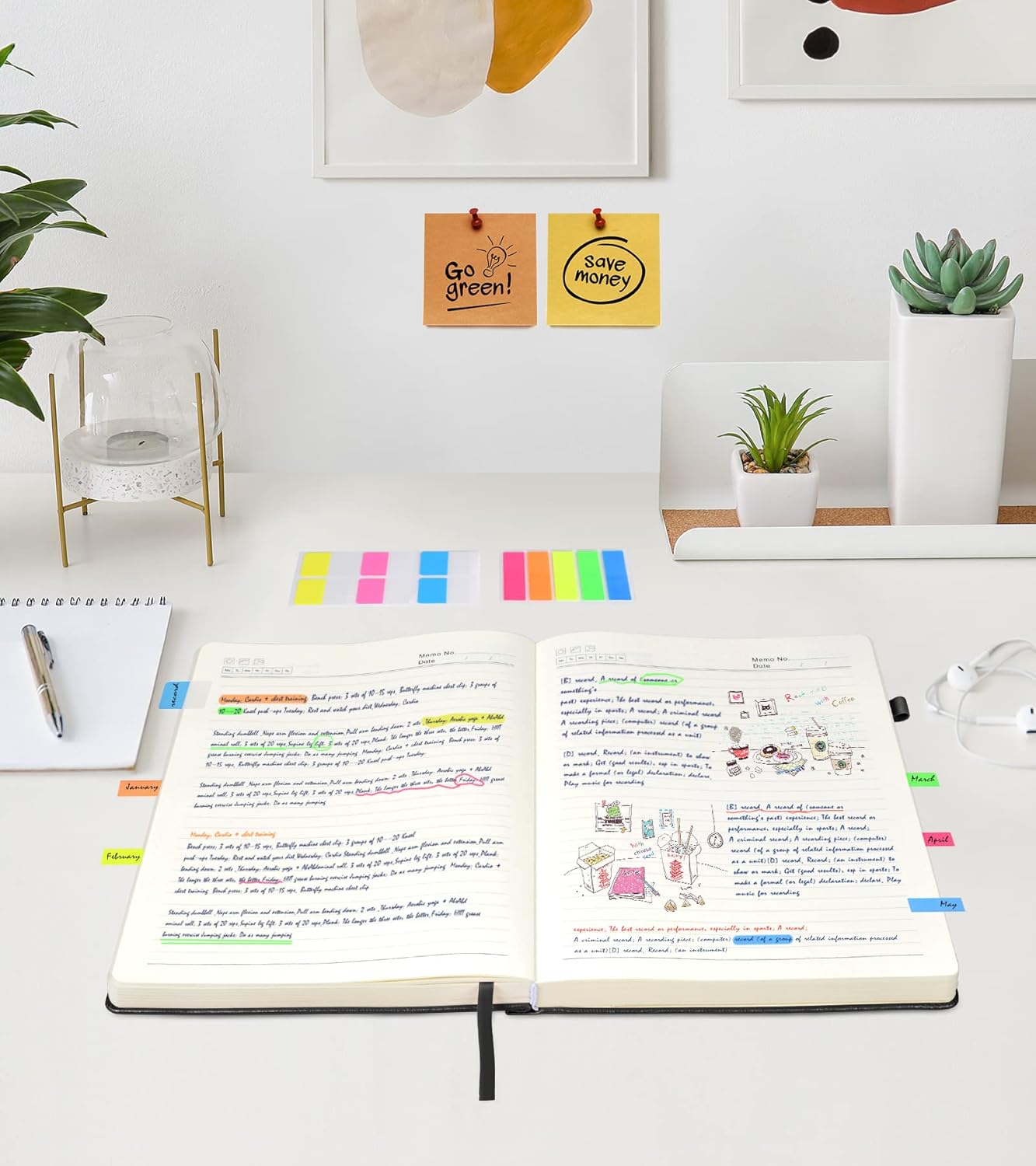 - 【Upgrade Lined Journal Notebook】Comes with 1 elastic closure band & 1 elastic bookmark band, more stable. An expandable inner storage pocket to keep track of appointment cards,notes,receipts,and more. 1 gift of multicolor index tabs stickers for papers classifying and marking.
