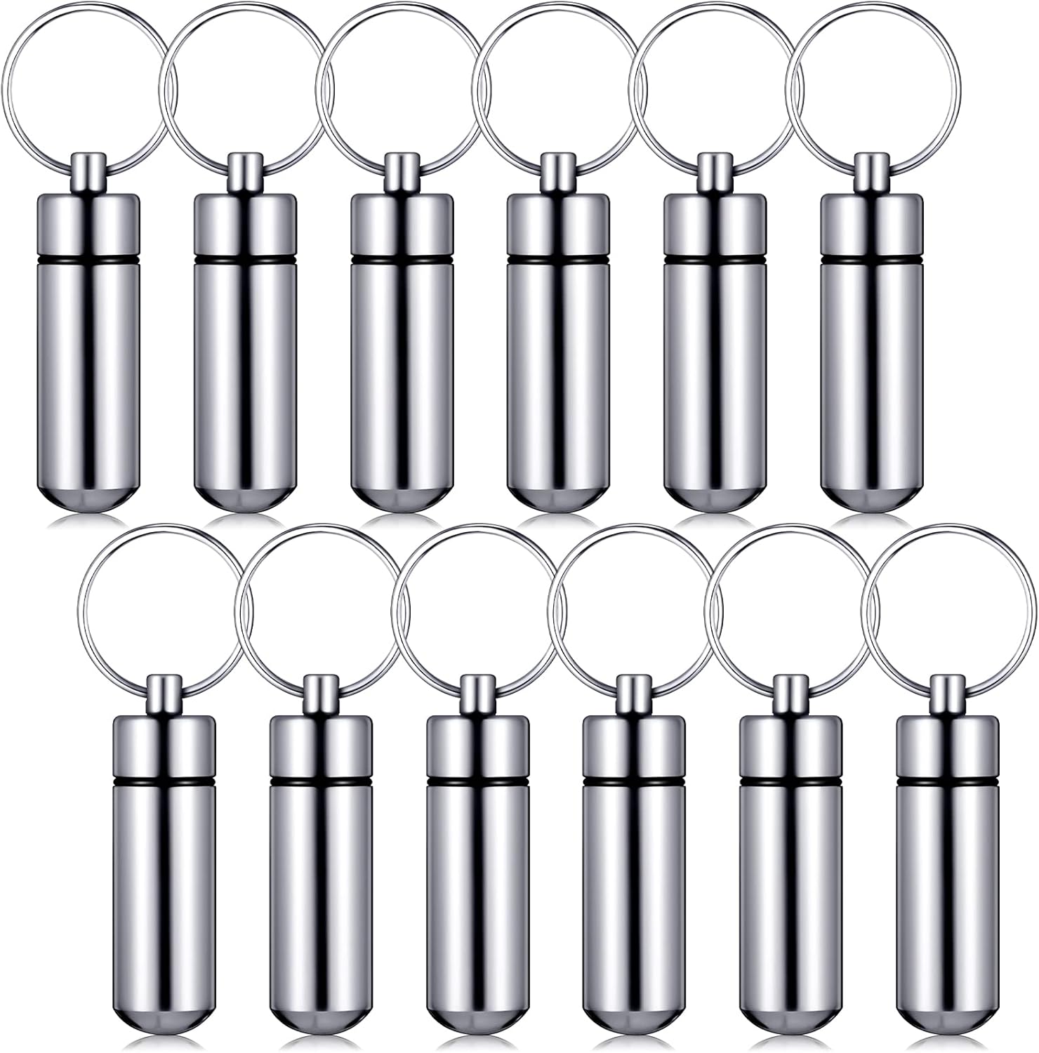 Patelai 12 Pcs Portable Keychain Pill Holder Mini Pocket Pill Case for Men Women Aluminum Geocache Containers Waterproof Metal Medicine Bottle Organizer for Outdoor Camping Travel(Silver)