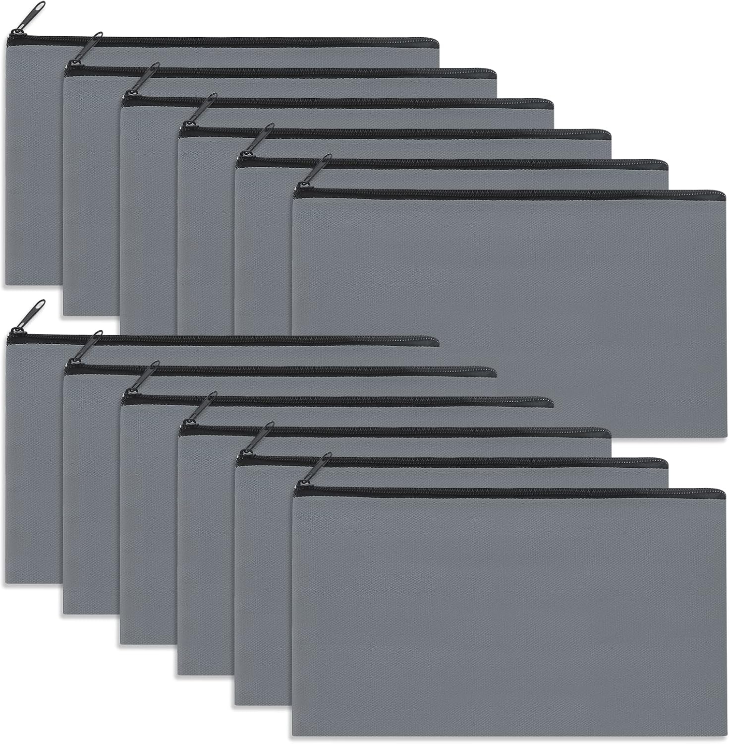 12 Pieces Cotton Canvas Makeup Bag, Multipurpose Cosmetic Bag with Zipper Travel Toiletry Pouch, Blank DIY Craft Bag (Grey, S)
