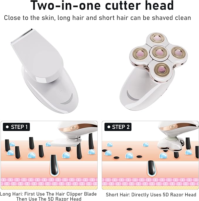 - 【2-in-1 Versatile Design】Women's Electric Razor and Trimmer.All-in-One Grooming Solution.This electric shaver for women features a 2-in-1 design, doubling as a long hair trimmer. Easily switch between shaving and trimming for versatile grooming needs